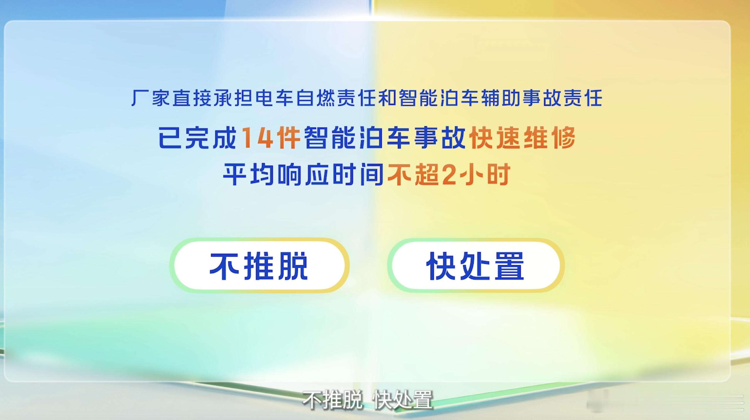 还提前满足2026年电池安全新国标,3分钟内就能预警热扩散,自动解锁+双闪,比国标要求更严苛。从“双担责”升级“三担责”,智能泊车事故也兜底,48小时出电池检测报告、72小时完成更换,400热线专人对接不推脱。