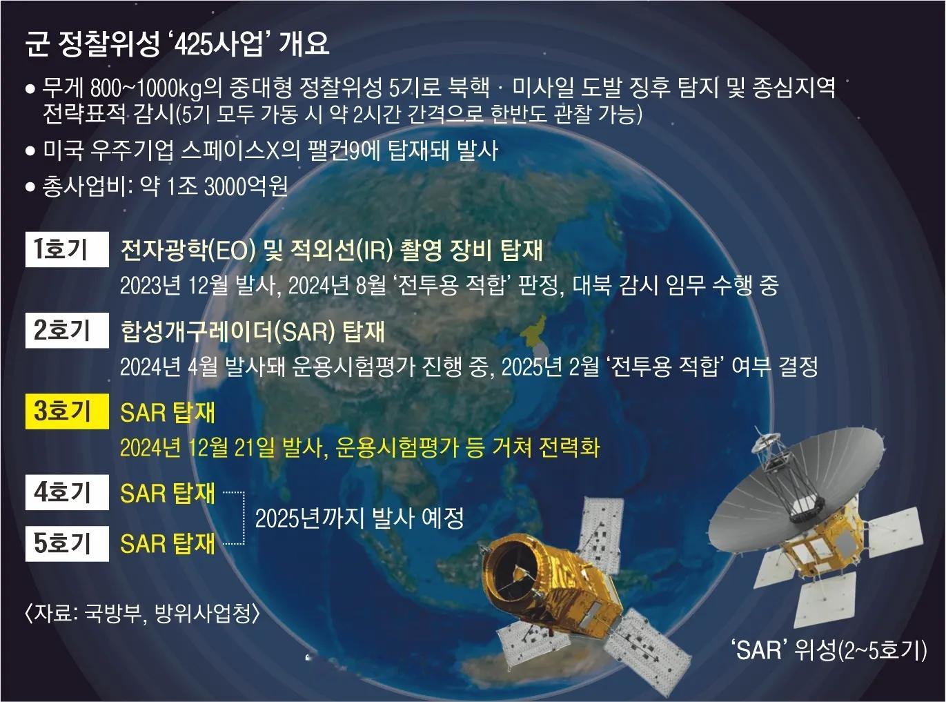 11月2日,韩国军方“425项目”最后一颗(第五颗)“合成孔径雷达”侦察卫星由“