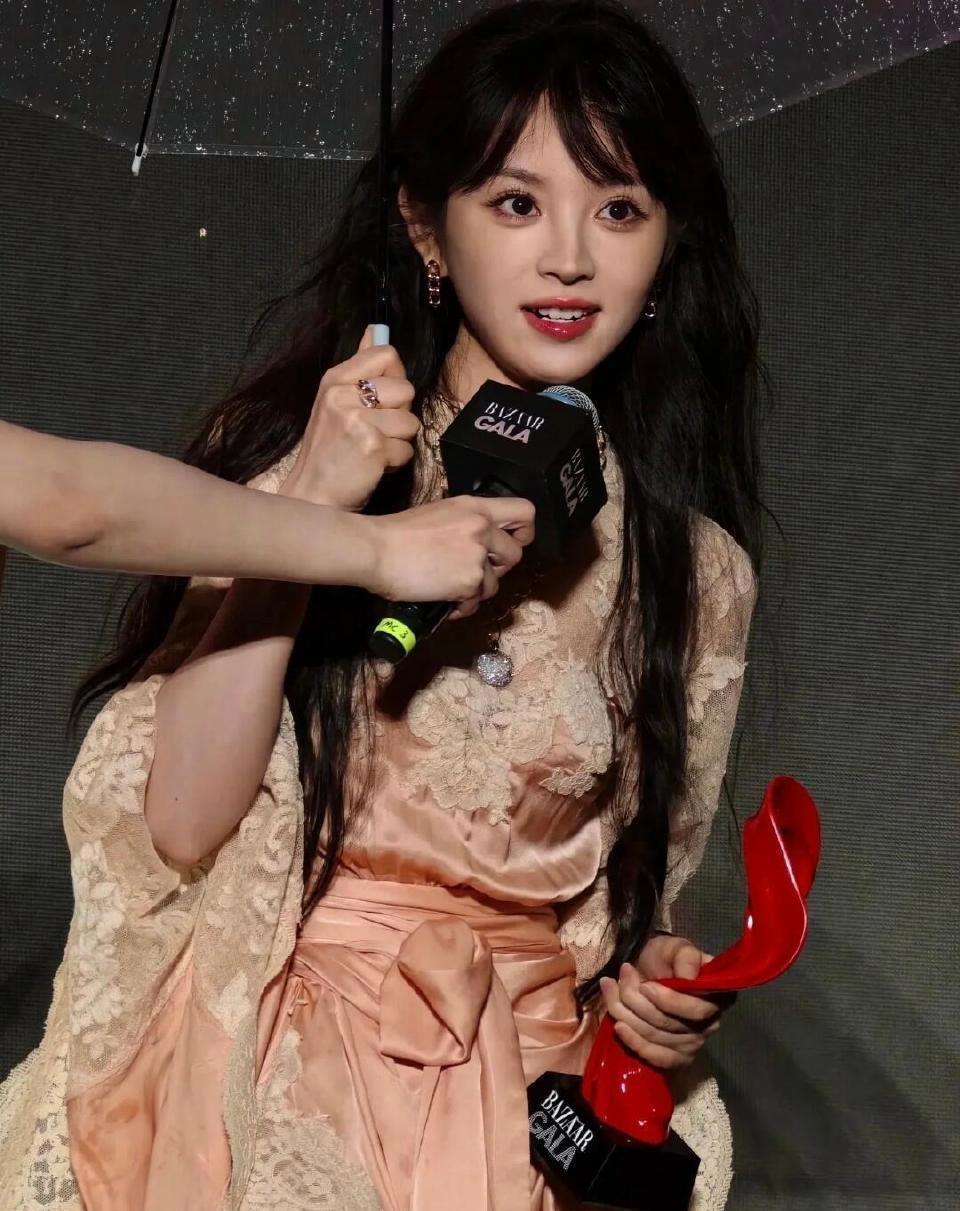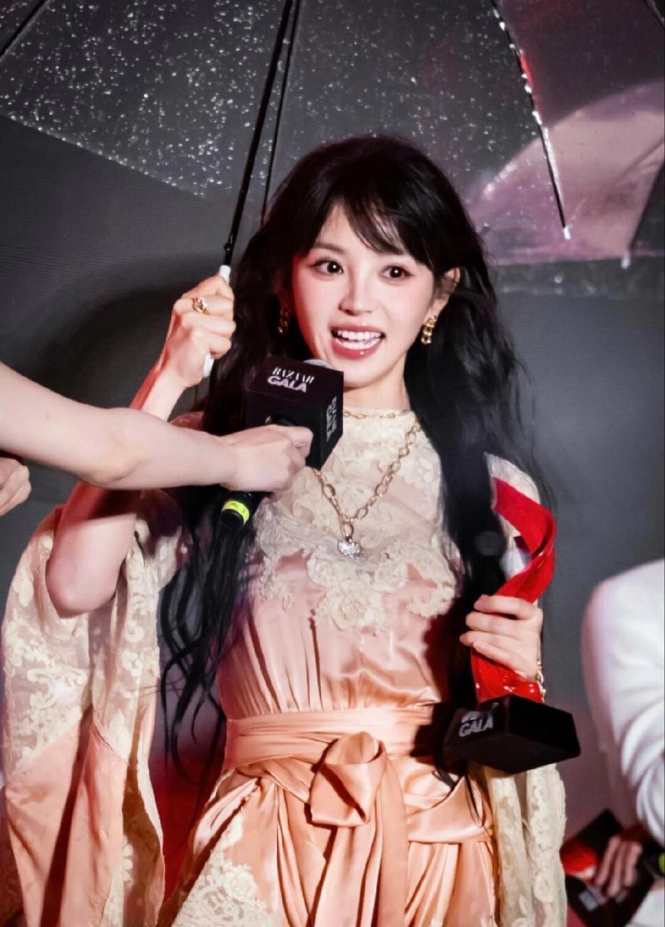 刘亦菲把死亡玫粉穿出了定制款的感觉,这种颜色普通人穿上分分钟黑三度,她居然能穿出