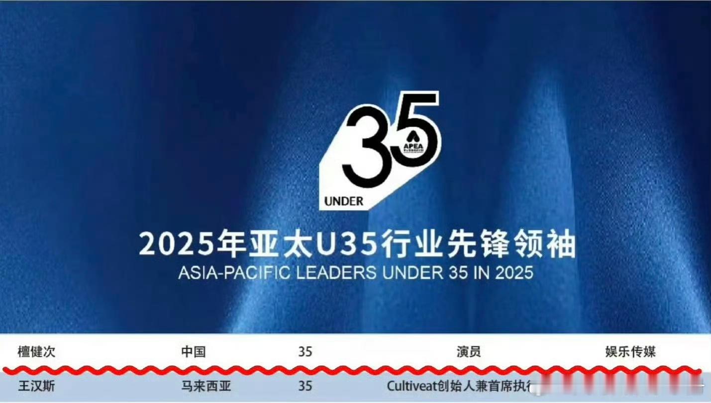 檀健次入选2025亚太U35行业先锋领袖🎉