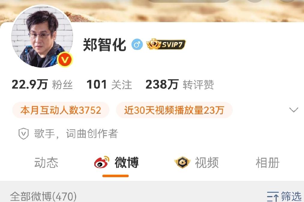郑智化删除了所有微博? 今天想看看郑智化的微博有什么更新,结果点进去一看,他的主页空空荡荡,空空如也,什么都没了。动态、微博、视频和相册都删的干干净净。 自从他发了一个深圳机场服务不到位,导致他连滚带爬上了飞机以后,他就深陷舆论漩涡,尤其是那个现场监控视频曝光出来以后,网友更是一边倒的指责他,他肯定承受了很大的压力,干脆清空账号,眼不见心不烦。