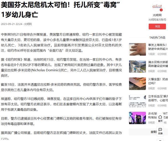 芬太尼到底是何方神圣,能够让美国对它又爱又恨,如此忌惮? 芬太尼这名字,听着像绕口的化学术语,可在医院里,它是实打实的止痛“狠角色”。它是人工合成的阿片类药,止痛劲儿比吗啡猛80到100倍,不管是手术前后的撕心裂肺疼,还是癌症患者熬不住的慢性剧痛,靠它都能快速缓解。 这药1960年由比利时医生研发,1968年就拿到了美国的医疗使用许可,凭着起效快、作用时间短、对心跳血压影响小的特点,很快成了外科手术的常用麻醉帮手,也是术后止痛的首选,在减轻重症患者痛苦这件事上,几乎没别的药能替代它。 可这宝贝药一旦踏出医院大门,就彻底变了脸,成了缠上美国社会的“催命符”。 纽约有家日托中心发生的悲剧,把这药的另一面暴露得明明白白——孩子们午睡的垫子底下藏着芬太尼,走廊壁橱里堆得满满都是这玩意儿和包装工具。 这里压根不是照顾孩子的地方,而是毒贩伪装的分销点,甚至会把毒品混进婴儿爽身粉这类日用品里偷偷流转。1岁的小男孩尼古拉斯·多米尼奇就这么没了命,另外三个8个月到2岁的孩子也被紧急送医抢救。 纽约市长在发布会上说的细节更让人头皮发麻:只有十分之一指甲盖大小的一点芬太尼,就足够毒死一个成年人,对体重更轻的孩子来说,杀伤力更是翻了倍。 这样的悲剧压根不是个例,芬太尼早就成了美国意外死亡的头号黑手。 美国疾控中心的数据摆在那儿:2022年全美有近11万人死于药物中毒,其中8.3万人都和芬太尼这类合成阿片类药有关,占比高达75.7%。这数儿,比伊拉克、阿富汗两场战争里美军阵亡总人数的10倍还多。 就算到了2024年,数据稍微降了点,仍有4.84万人因芬太尼过量丧命,占全年药物致死总数的60%。 更吓人的是,芬太尼的衍生物毒性更离谱,比如卡芬太尼,毒性是海洛因的5000倍,只要2毫克,就足以让人一命呜呼,这让非法毒品的致死风险直接飙升。 美国对芬太尼的依赖,早就埋下了祸根,这场危机其实是三波阿片类药物滥用潮的延续。 上世纪90年代,制药公司砸钱资助专家,一个劲鼓吹“阿片类药没啥危害”,还怂恿医生多开处方,硬生生捧出了美国的“止痛文化”。当时普渡制药的奥施康定,就直接导致20万美国人死于过量服用。 2010年,处方药物管控稍微严了点,瘾君子们又转头盯上了更便宜的海洛因,短短四年里,白人海洛因过量死亡率暴涨了267%。 等芬太尼一出现,因为合成原料好弄、成本极低,很快就成了新的替代品,这波滥用潮来得比前两次更猛、更难挡。 更离谱的是,美国的医药利益集团,早把芬太尼打造成了“摇钱树”。药商明明知道这药容易被滥用,却特意开发出“解药”纳洛酮,医生开芬太尼处方时,往往顺带推销纳洛酮,等于一病赚两笔,形成了完美的赚钱闭环。 过去十年里,制药企业砸了近25亿美元用于游说政客、资助竞选,全美90%的众议员和97%的参议员都拿过他们的捐款。也正因如此,作为全球化工原料大国的美国,至今都没对芬太尼实施永久的整类列管。 更讽刺的是,政府监管机构的官员离职后,常常直接跳进制药行业,连点“冷静期”都没有,监管的防线从根上就漏了窟窿。 管控上的不给力,让芬太尼危机更难收拾。美国国家缉毒局(DEA)一万名工作人员里,真正干一线执法的只有五千人,而且和地方警察只是合作关系,得靠发加班费才能调动人家的积极性,根本没法形成全国联动的缉毒网络。 更荒唐的是,DEA在国内才设21个地方分支,国外反倒布了93个点,这布局明摆着是“内病外治”——明明是自家监管松散,却总想着把责任推给别的国家。 两党在禁毒这件事上还互相扯后腿,共和党提出的“阻止致命芬太尼贩运法案”,有132名民主党议员直接投了反对票,国会从收到芬太尼的危险警告,到出台专项法案,硬生生拖了快四年。 美国人口只占全世界的5%,却吞掉了全球80%的阿片类药,这种畸形的需求市场,让芬太尼滥用陷入了恶性循环。就算2024年致死人数降了点,专家仍警告说不能掉以轻心,稍微一放松,情况就可能反弹。 从医院里离不开的镇痛良药,到偷偷钻进日托中心的致命毒品,芬太尼在美国的命运转折,说到底是监管失灵、利益勾结和政治极化凑到一起搞出来的结果。 这种既离不得又管不住的矛盾,让美国对芬太尼的忌惮越来越深——毕竟这东西是把真真切切的“双刃剑”,一边连着无数患者的求生希望,一边牵着成千上万家庭的生死命运。