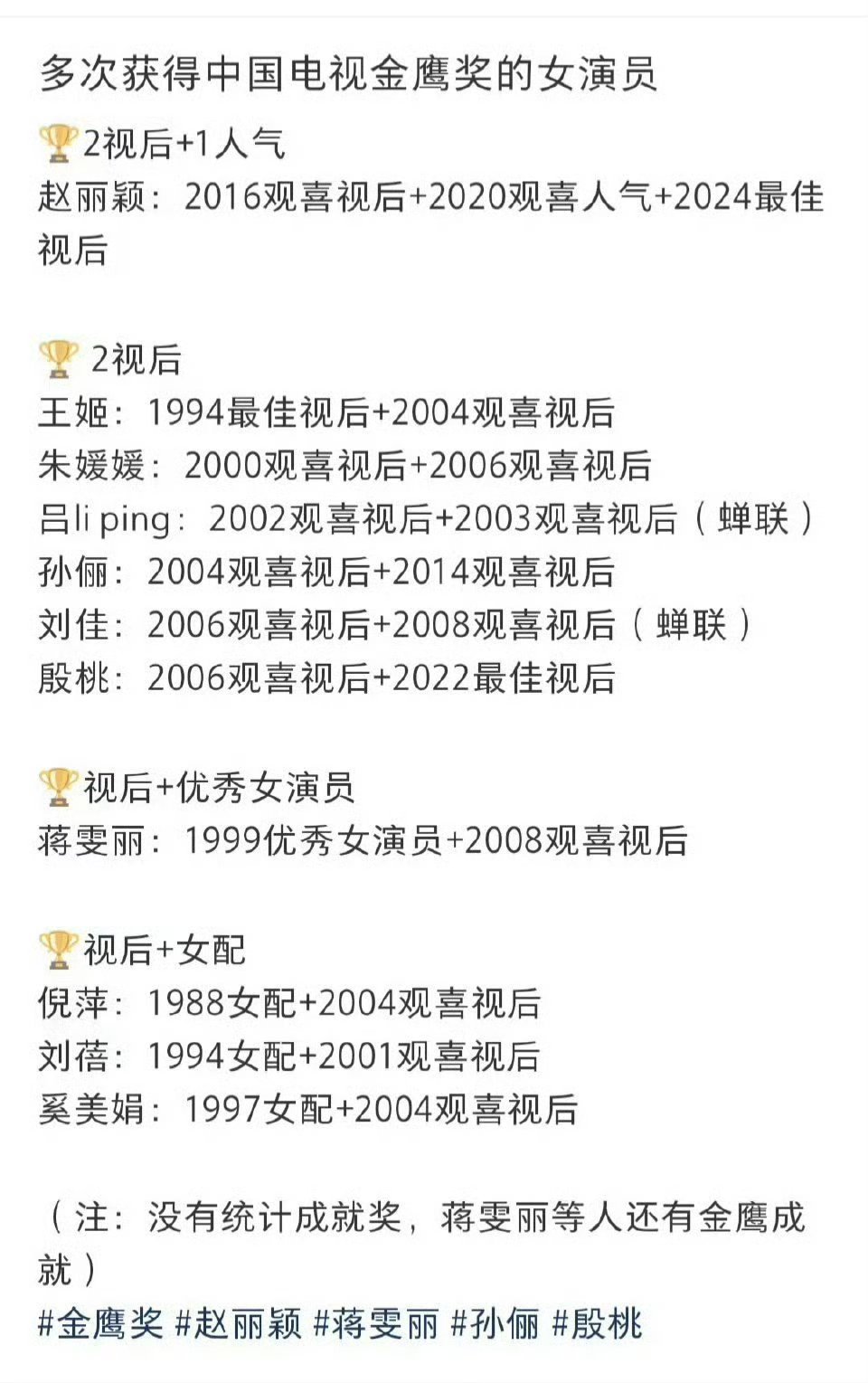 就喜欢看一些赵丽颖的奖项实绩获金鹰奖最多的女演员赵丽颖​​​