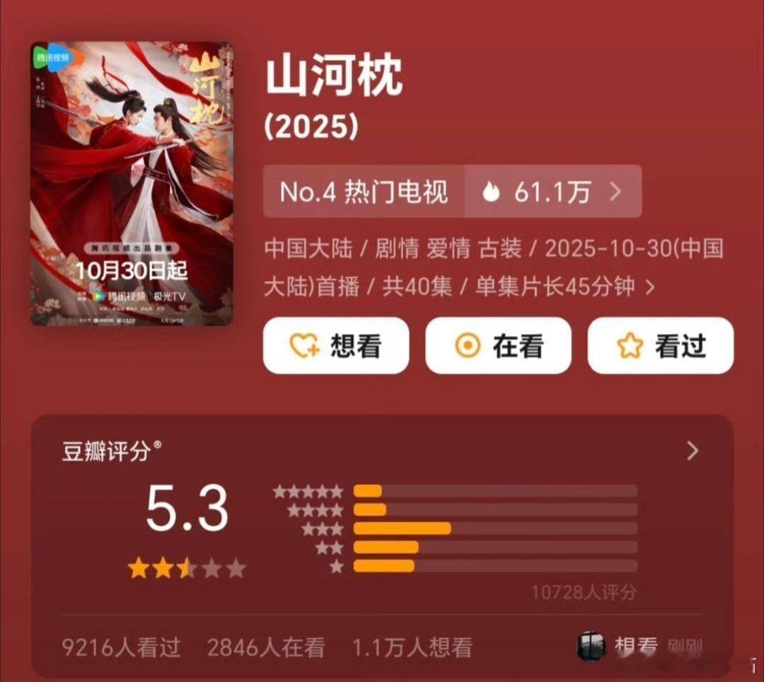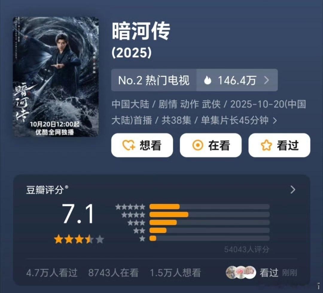 近期三部古装开分,《暗河传》龚俊,7.1分《水龙吟》罗云熙,5.7分《山河枕》宋