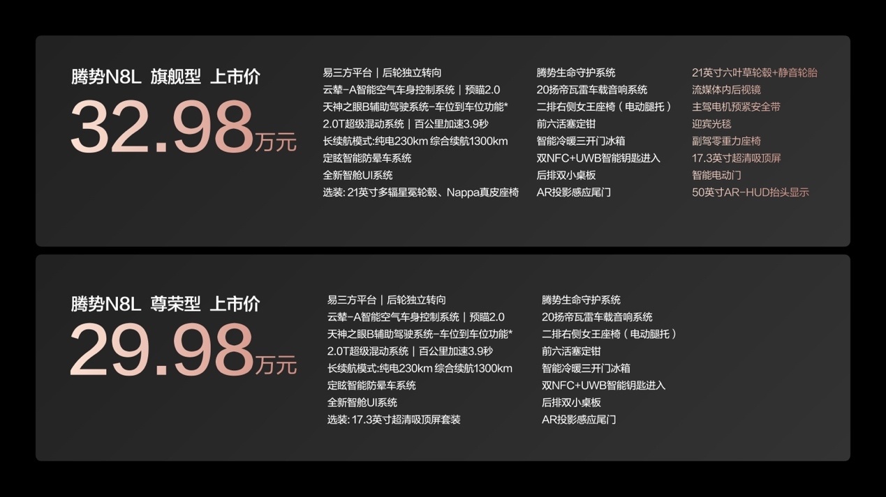 腾势N8L正式上市了!29.98万元起的亲民价格,精准锁定追求品质生活的多人口家庭。在30万级豪华SUV市场,它重新定义了“价值标杆”,让高品质出行不再遥不可及,为车主提供越级价值终极满足。