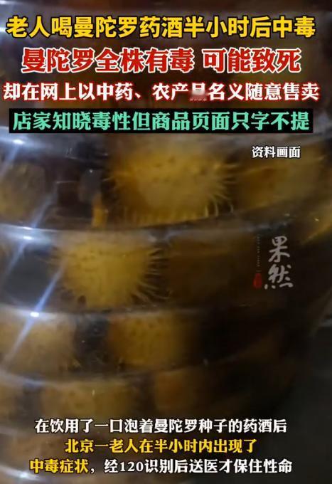 “悲剧还是发生了!”11月1日报道,北京,一八旬老人晚上睡不着觉,便打算喝点酒助眠,可尝了一口药酒后觉得味道奇怪,就没有继续喝,结果仅过了半个小时,老人就出现躁动不安、失语等症状,家人急忙叫了救护车,经医生诊断老人是曼陀罗中毒! 老人平时身体还算硬朗,就是最近天气一冷,老是睡不好觉,躺在床上翻来覆去,到半夜还醒着。 晚上快11点,他先喝了点家里的葡萄酒,觉得效果不大,就瞄到旁边有个药酒坛子,说是能安神助眠。平时他一直没敢喝,可那天实在熬不住,就想着拿出来试一试。 刚入口,他就皱起眉头,味道怪怪的,没敢多喝,只抿了一小口就放下了。 可没想到,躺下不到半小时,家人就发现他怪怪的,他手脚乱动,嘴里发出“呜呜”的声音,说不出话,眼神直勾勾的,喊他名字也没反应,整个人坐也坐不住,明显很不对劲。 家人吓坏了,以为是脑梗,赶紧拨了120。 急救人员到后先测了血压、心率,都正常,也排除了低血糖。 但老人的状态很怪:嘴唇干裂、皮肤燥热,眼睛睁着一脸惊恐,瞳孔比平常大得多,直径大概5到6毫米,而且对光几乎没反应。 “这不像脑血管问题,更像中毒。”急救医生一听就开始问家人细节,这才想起老人刚喝了那口药酒。 原来,那坛药酒是家里人用曼陀罗种子泡的,一直没人动过,也没贴标签。 医生马上意识到,这是典型的曼陀罗中毒,立即把老人送到能处理中毒的医院。 医院检测后果然证实中毒。医生说,曼陀罗全株都有毒,种子最毒,里面含阿托品、山莨菪碱等成分,会直接影响神经系统。 老人年纪大、代谢慢、抵抗力弱,哪怕只喝一口,毒素吸收也很快,半小时就出现躁动、说不出话等症状。 若喝得多点,可能会心律失常甚至心脏骤停,后果不堪设想。 幸好送医及时,医生立即给老人洗胃、输液利尿,加快排毒,还用了针对曼陀罗的解毒剂。 家人这才后怕,原来这坛药酒是别人给的“偏方”,号称能“安神”,谁知道差点要了命。 类似的事情并不少见。中药师提醒,曼陀罗的毒性和药效差别极小,普通人根本掌握不了剂量,自行泡酒或者入药极容易中毒,全国多地都有过案例,甚至有人死亡。 更让人担心的是,现在网上还有人把曼陀罗的花、果、种子当作“中药材”或“农产品”卖,完全不提危险性。 医生提醒,曼陀罗中毒早期症状容易误判,比如口干、烦躁、瞳孔散大,可能被当成中暑、脑梗或精神问题。 如果近期吃过不明食物或药酒,一旦出现这些症状,一定要立刻告诉医生,尽早救治。 曼陀罗不是普通偏方,我国早已列为毒性中药,没专业指导绝对不能碰。 老人出院后,家人赶紧把那坛药酒扔了,还把家里所有没标识的瓶罐都整理一遍。 这件事提醒大家,尤其家里有老人,千万别随便信什么偏方,药酒不明不白就别喝,甚至都要妥善收好。治病养生,还是得靠科学,别拿命去试险。 对此你怎么看? 信源:齐鲁晚报·果然视频