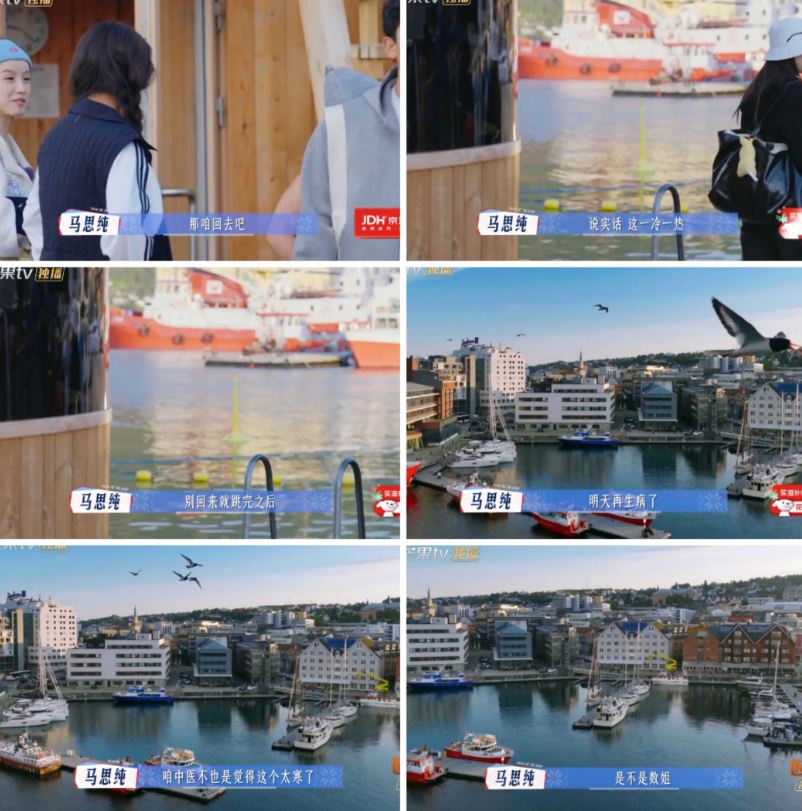 轮到马思纯当挪威导游, 她给花少团安排了桑拿跳海。 就是刚蒸完桑拿, 立马跳入冰冷的海水中, 尝试冰火两重天。