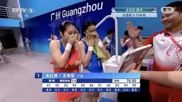 11月2日,在广东奥体中心游泳馆举行的第十五届全运会跳水女子团体项目中,奥运冠军全红婵时隔183天复出,搭档王伟莹参加了女子双人10米台的争夺,以235.86分位列第一,帮助广东队成功摘得本届全运会跳水项目首金。 11月2日,在广东奥体中心游泳馆举行的第十五届全运会跳水女子团体比赛中,奥运冠军全红婵时隔183天复出。她与搭档王伟莹共同参加女子双人10米台项目,以总得分235.86分夺得冠军,帮助广东队获得本届全运会跳水项目的首枚金牌。这场比赛展现了全红婵的出色状态,也为广东队的夺冠增添了重要的胜利。陈芋汐,全红婵 全红婵泳装照