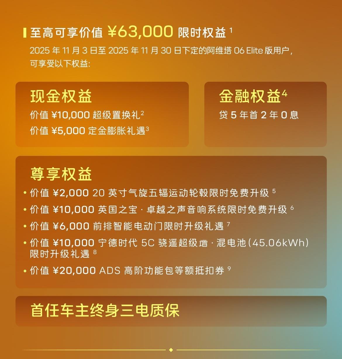 阿维塔06Elite版全新上市全系限时权益价¥18.99万起。限时权益:即刻下定至高可享价值 63,000元 20万到手华为超值轿车阿维塔最优性价比产品!