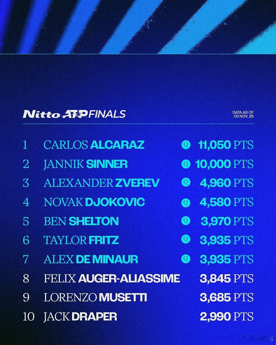 PIFATP“通往都灵”排名更新,日东ATP总决赛单打最后一席归属会是❓1⃣