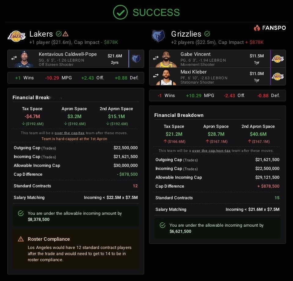 文森特和克莱伯是湖人薪资匹配的宝贝,上可触狄龙布鲁克斯,下可捞考德威尔波普。⏳