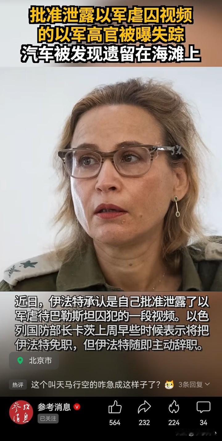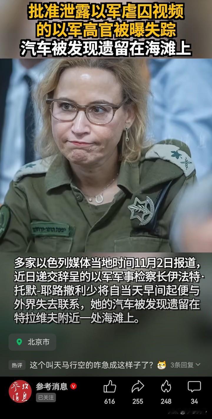 以色列虐囚,解决不了这个问题,那就解决提出问题的人! 据报,以色列扣押了不少巴勒斯坦人,这些人也没有经过审判,但是就长期关押。对于这些囚犯,以色列还有系统性的虐待,他们相互敌对仇恨,这也是不难想象的。 从以色列交回的巴勒斯坦人遗体(囚犯),就看出被虐待的痕迹,掩盖不了。 当然,以色列人是不会承认的。一句“拿证据来”,就难倒巴勒斯坦一方。 因为,在以色列的地盘,你到哪里能弄到视频证据呢。 但是,人在做,天在看。有视频监控,说不定也有人用手机拍了视频,这样的证据肯定是存在的。 证据肯定不能公布出来,结果,以军的军事检察长(一个女少将)批准泄露以军虐囚视频,职业使然,也是因为更有正义感吧…… 内塔尼亚胡和他内阁那些部长就火了,这是“授人以柄”,即使是军事检察长,也要给她安上抹黑以军的罪名。 如今,这个女少将据说失踪了,希望她还活着吧。 只能说,不解决虐囚,而是解决提出问题的人,这也是标准的“以色列做法”了。以色列 巴以冲突 书慰我心说国际时政 资料:《参考消息》