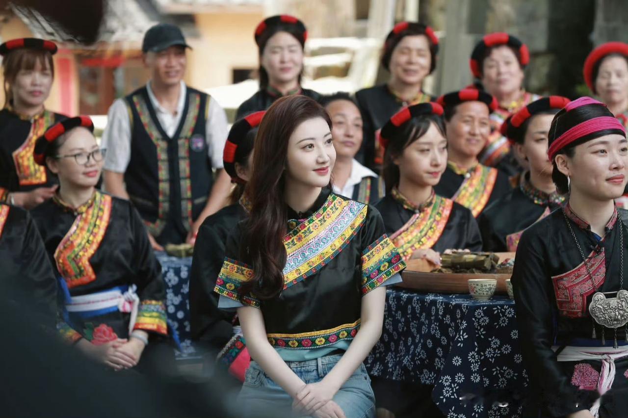 景甜真是把“人间富贵花”和“仙气”完美融合了,贵气优雅,一笑起来又清新甜美,完全没有距离感啊。 穿上民族服饰更是绝了! 被她明亮的眉眼和大气的气质驾驭得妥妥的。 果然颜值天花板就是任性,粗布麻袋都能穿出高定感吧? 这姐完美诠释了:不是衣服衬人,而是人在发光啊!