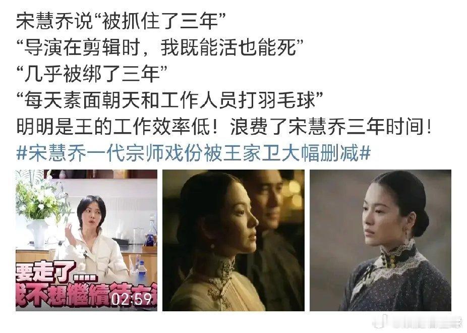 还有网友质疑,王家卫和宋慧乔,王家卫扣押宋慧乔的护照三年,却只拍了几分钟到底为何?
