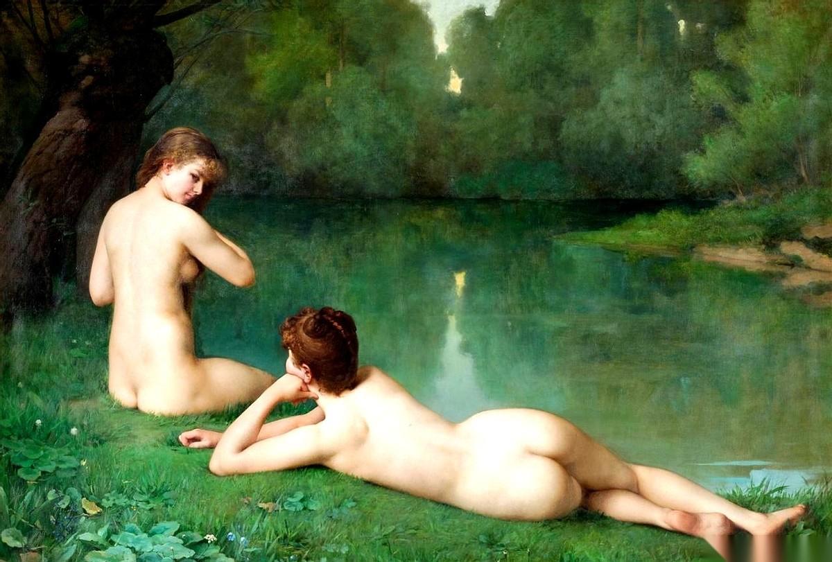 有两个哥们儿,双胞胎,长得一模一样,干的活儿也一模一样——画画。 你猜怎么着?画风都几乎分不出来。有时候画嗨了,俩人干脆在同一块画布上一起画。 这幅画就是其中一个叫本纳的哥们儿画的。 他俩最爱画啥? 美女。 别觉得俗,也别扯什么艺术的宏大叙事。一百多年前的法国,这对双胞胎兄弟,就把对“美”最原始、最赤诚的迷恋,画了个遍。 你看画里这个女人,在水边,整个人松弛下来,皮肤的质感,光影的流动,没有一点矫揉造作。她不是神,不是女王,她就是一个活生生的、让你觉得“真美啊”的女人。 这才是最牛逼的地方。 艺术有时候没那么高深,剥开层层叠叠的“主义”和“流派”,内核往往简单得吓人。 说白了,男人那点心思,一百多年前就给你画得明明白白了。 就是那份藏不住的欣赏,那份想把瞬间的美好定格下来的冲动。 就这么简单。