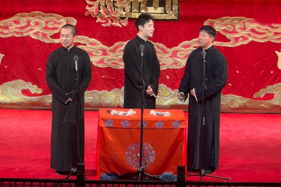 副总烧饼临时到九队演出,张九龄、王九龙玩双簧,没少揭底师哥。德云社当红演员回归小剧场,或在本队演出,或到其他队伍客串,这都是挺正常的。行业之间的界限,对他们来说已经可有可无,更何况队伍的区别。登台后,张九龄是没少揭底,特别是嫂子的那段,让烧饼都有点发怵了,不知道回家如何交代。舞台演出来源于生活。生活被搬到舞台上,经过艺术加工,效果也就轻松翻倍了。