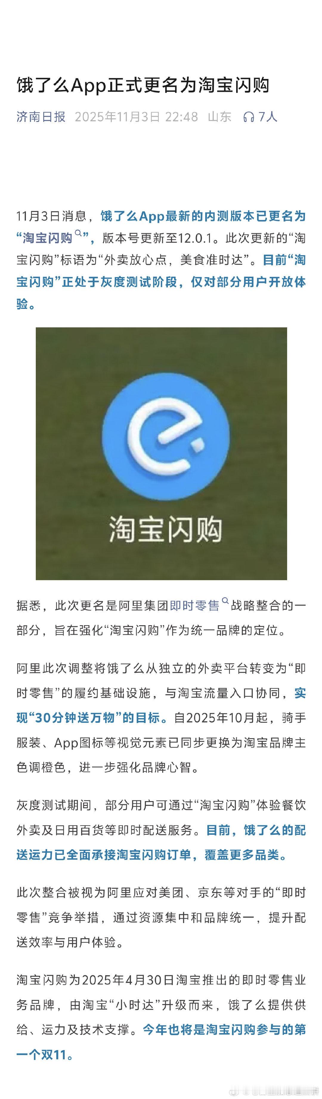 饿了么要改名成淘宝闪购了