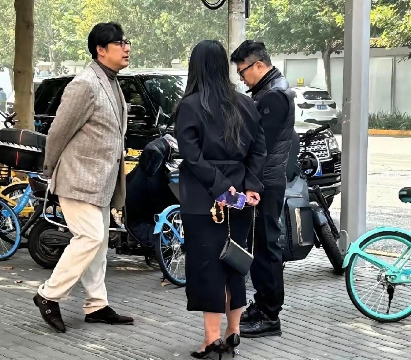 这张照片,王岳伦只露了侧脸,而李湘是一身黑色穿搭Look的背影。
