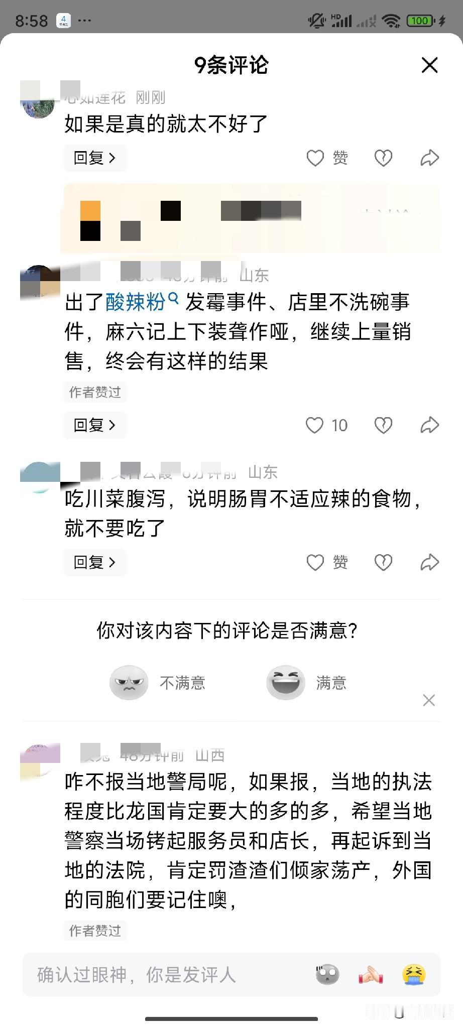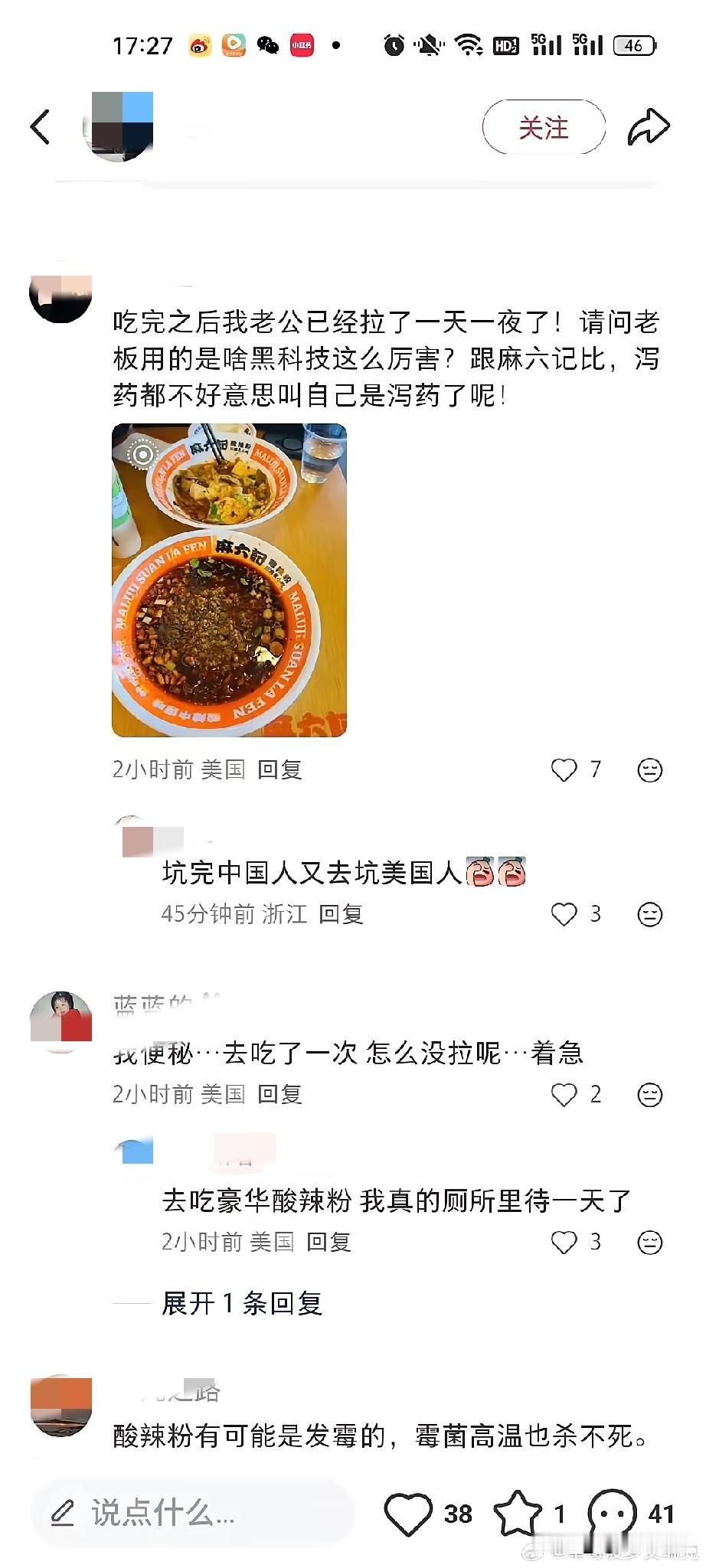 到底是真是假?如果是真的,麻六记在洛杉矶这情况,影响就太大了,如果是假的,那有些人要担责的,我们这些网民只能根据网络事件发表自己的看法,真真假假那是平台该审核的。 说来说去还是食品安全,质量第一,麻六发霉事件不是偶而了,如果只追逐流量带货聚财,完全就是突破人性底线了。 有的网民说:酸辣粉发霉,豆干拉丝,既不发声也不整改,整天就是晒孩子、猜怀孕,到处旅游立人设,愚弄粉丝。我觉得不能怪别人这样说,本身就是事实,怀孕不怀孕都能成为流量话题,发现大嘴现在摆烂脸皮老厚了。 再这样下去,到头了。 只是总有这样少数的人,只要麻六记出现问题,只要有人说展览、汪憨、大嘴的问题,他们的神经就像闹钟的发条一样,就响了,说别人是黑子,这会居然看到一个神经大条这样说:黑子都跨境黑了。我想这人要不本身就是麻六的营销号,要不可是他们一家的小喇叭。我相信没有一个正常人会像你这么无聊。在事实面前还这样,如果不是你头脑有问题,就是你原本就是麻六。 对于网上这事,你们怎么看?欢迎大家评论。