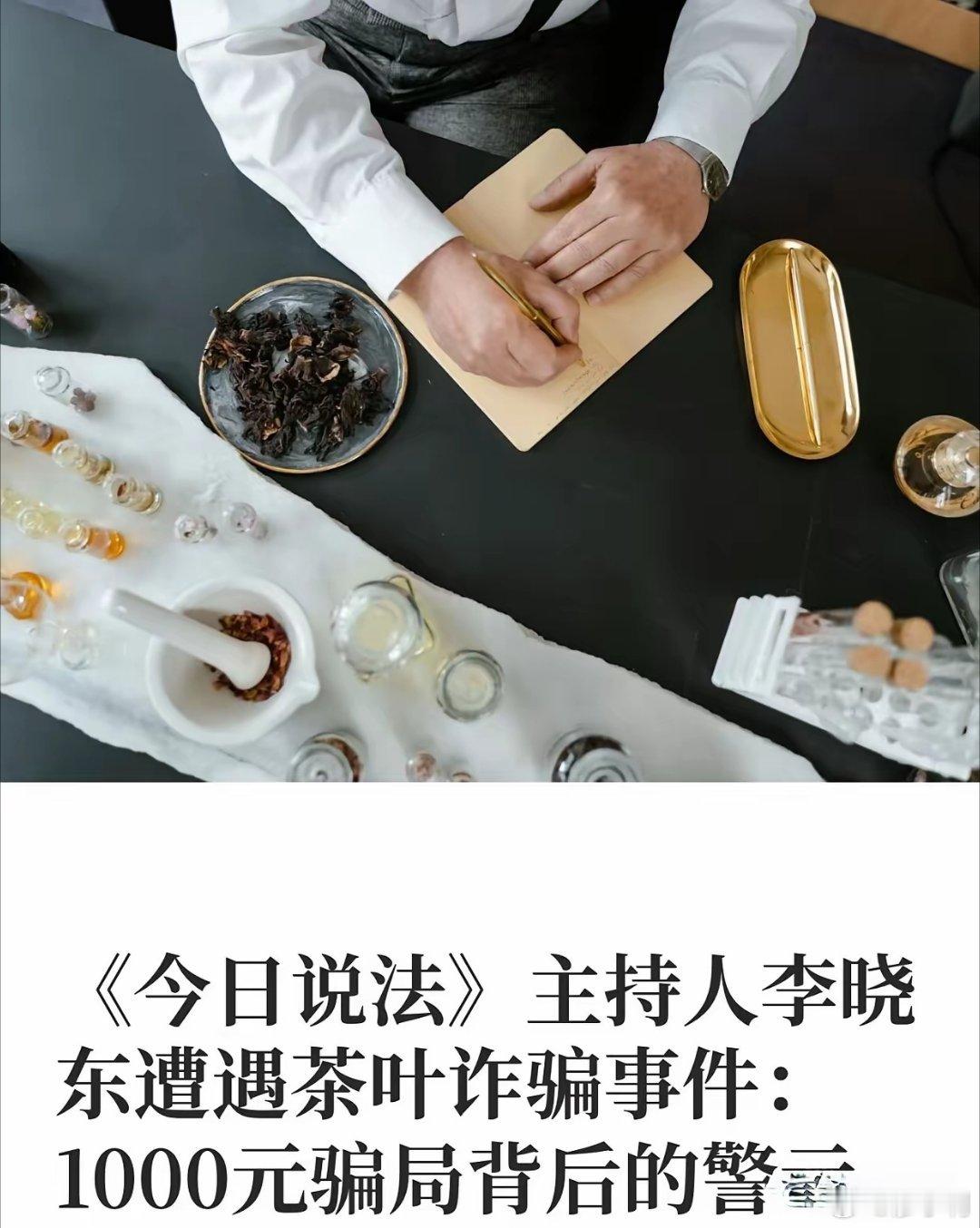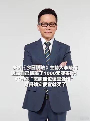 今日说法主持人被骗1千元买茶叶这个确实是老剧本了,法治节目主持人居然不知道,其实即使知道,在那一刻也确实容易被骗。但是万变不离其宗 ,只要脑子有了一丁点贪念,就会上当受骗。只要不贪便宜 ,骗子就无法得逞!热点观点
