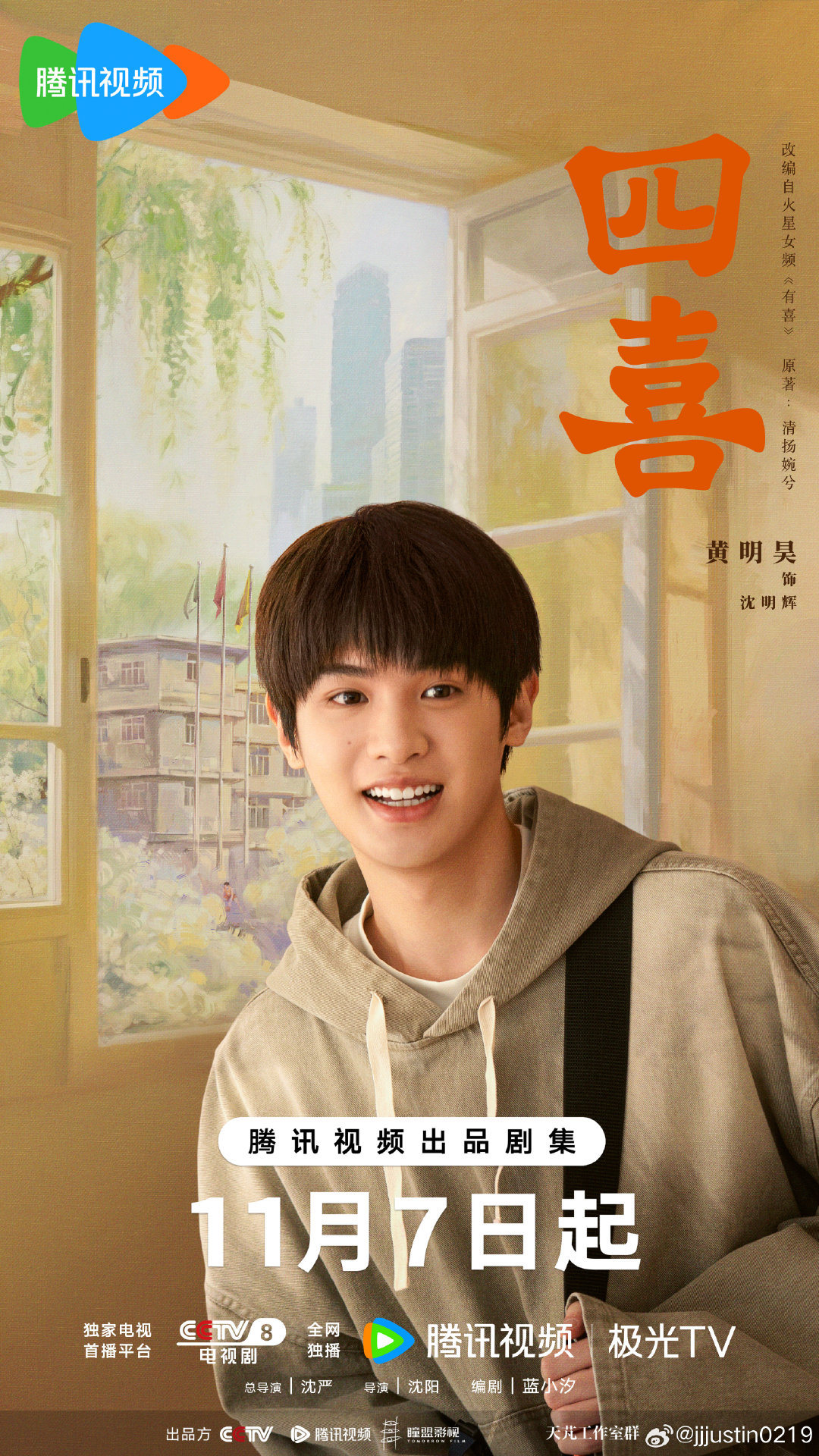 黄明昊新剧《四喜》定档海报来啦!顺毛卫衣造型看起来好乖巧呀,期待和沈明辉见面啦~