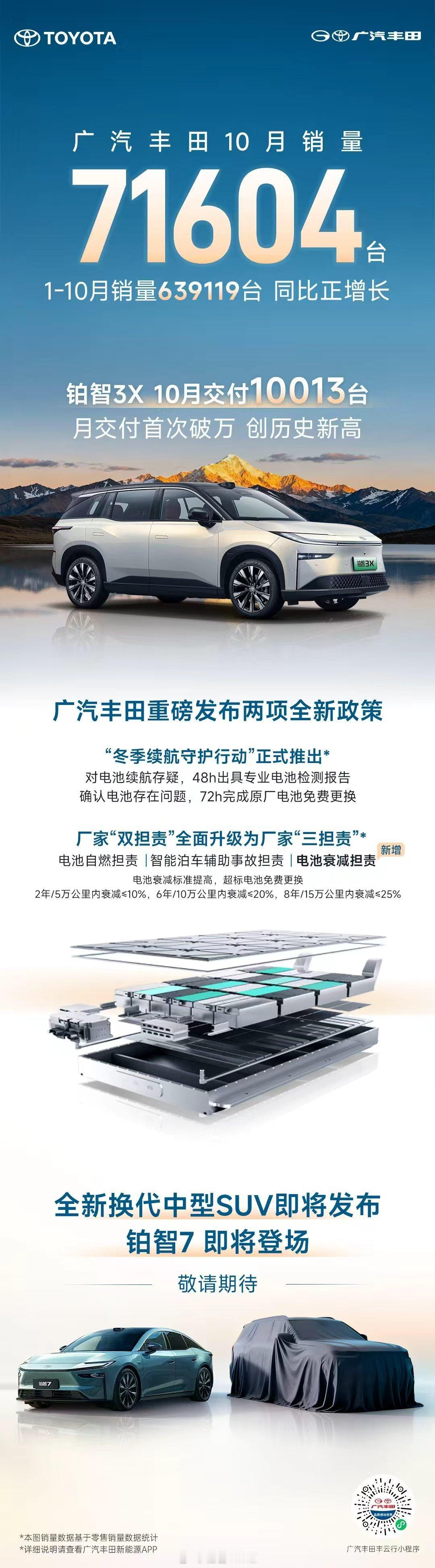 广汽丰田10月销量71604台,铂智3X月销量破万,交付量再创新高,六个月环比正增长。广汽丰田这是政策定到了用户买车的心坎上。