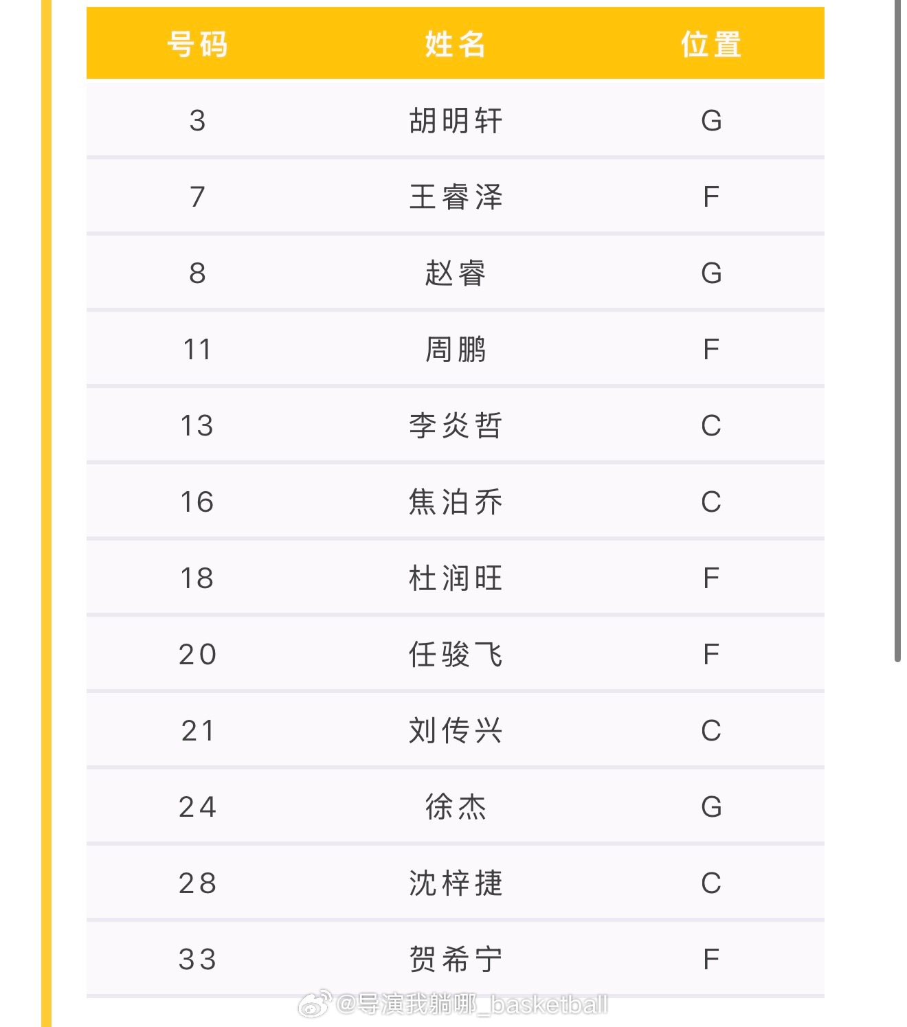 胡明轩(新疆),王睿泽,赵睿(黑龙江),李炎哲,杜润旺(河北),周鹏(辽宁),沈梓捷(江苏),贺希宁(山东),徐杰(广东),刘传兴(河南),任骏飞(山西),焦泊乔(陕西)