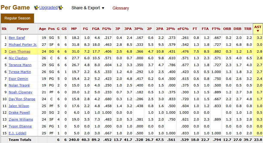 发现一个很难评的事情,篮网今年到现在队内助攻王是,emm,波特……