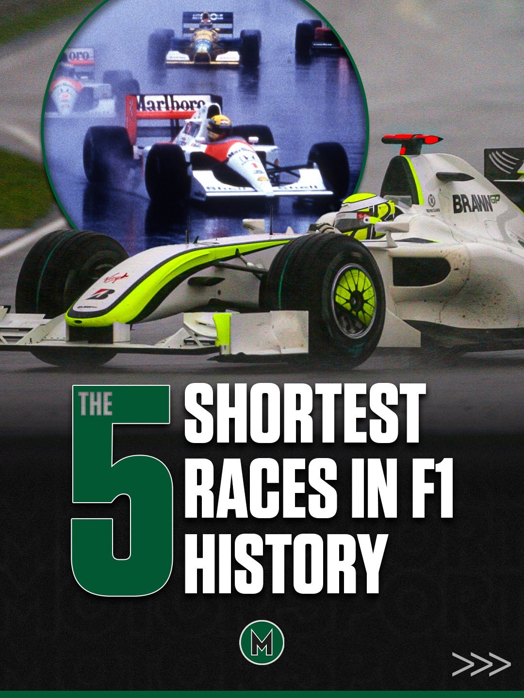 在F1世锦赛至今75年的历史中,其实就只有过5场比赛是跑了不到一小时就结束的。当然,这一般是因为天气或者发生重大事故导致比赛提前终结的缘故……