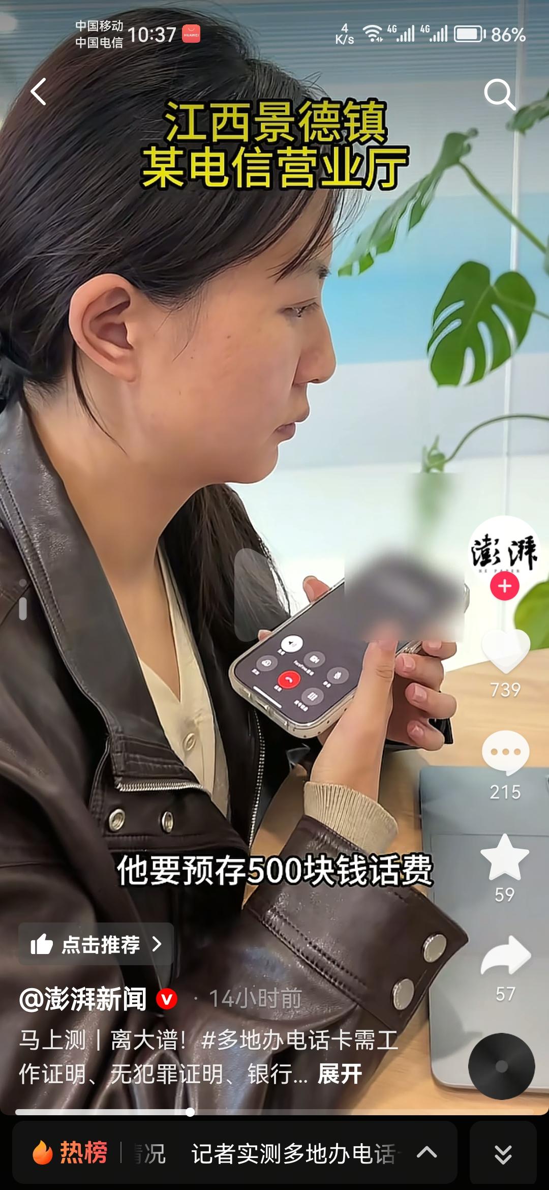 办电话卡需要出示无犯罪证明、工作证明、房产证、银行流水、预存500或1000元的话费!这是审查调查客户呢?还是营业厅夹带私货?江西名义上为了反诈让客户提供这么多证明,是给自己加戏,顺便让领导看到自己在认真工作,实际上自己捞油水。然后给老百姓带来很多麻烦,不要把反诈当成借口,把什么都套在上面。对此事,你们有什么样的看法?评论区留言。