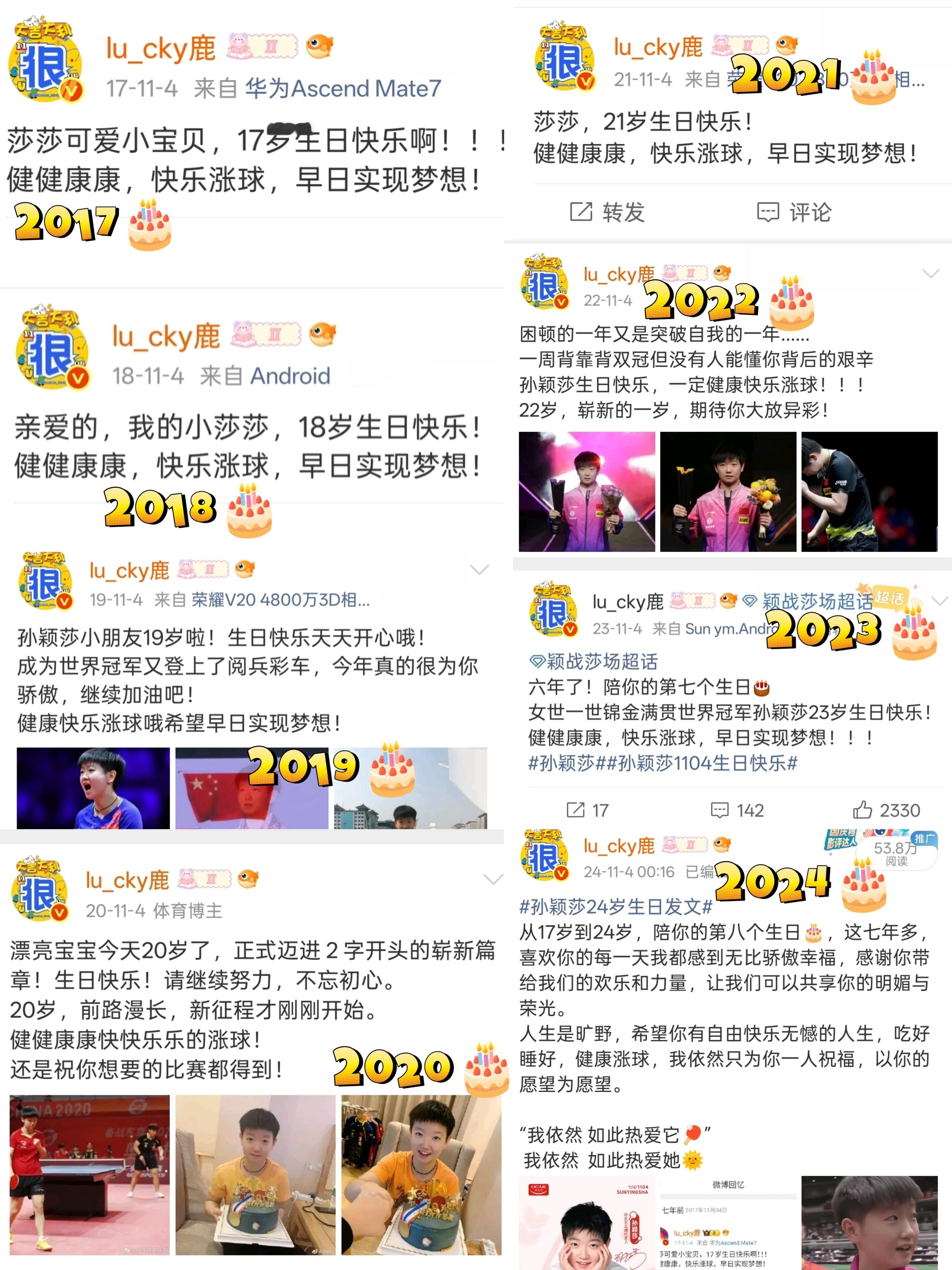 孙颖莎25岁生日快乐 十七岁到二十五岁,