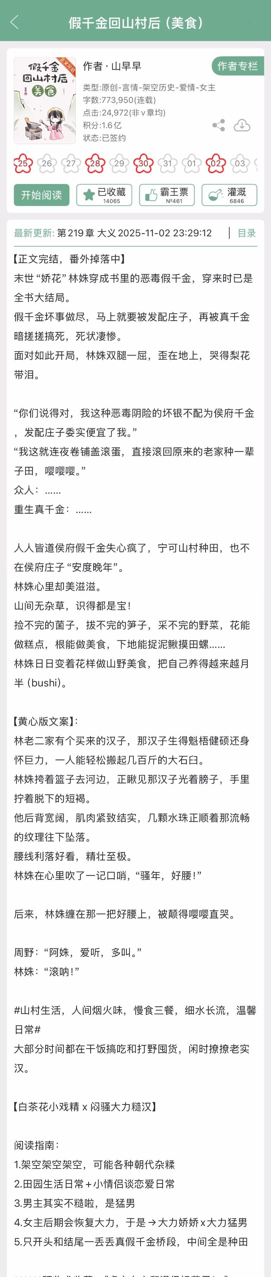 山早早的《假千金回山村后(美食)》完结啦!古言,末世女穿古代,田园生活日常➕恋爱日常,山茶花小戏精x闷骚大力糙汉[开学季]