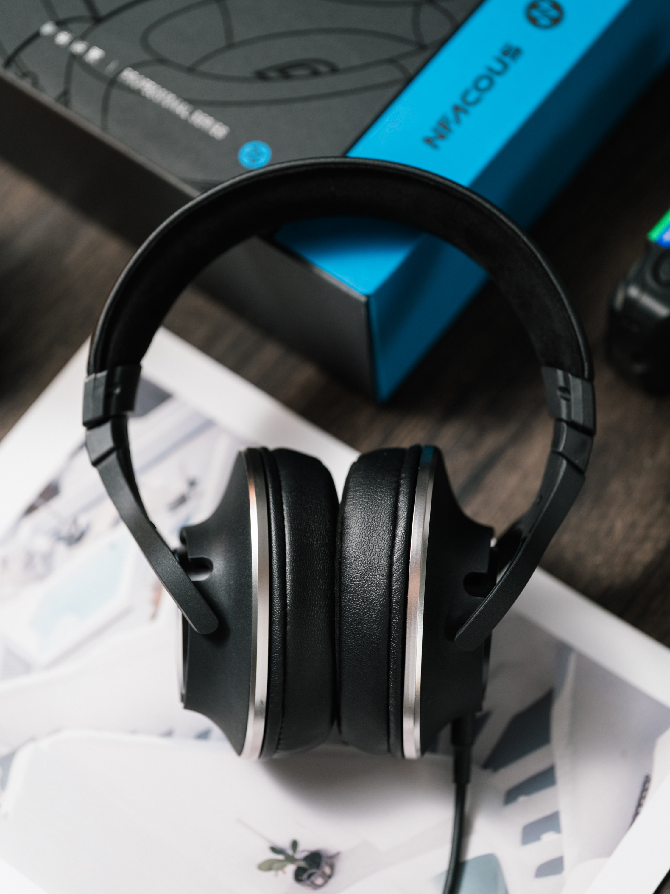 然后别看个头好像挺大,但实际上手并不重,戴上也不会太压头。细节的设计也有很多,倾斜单元布置、多级的调节杆、3D的转轴、左右都可以插线的设计,耳罩也很柔和。整个的体验还是很舒服的,声音的人声会相对靠前一些,更细腻。