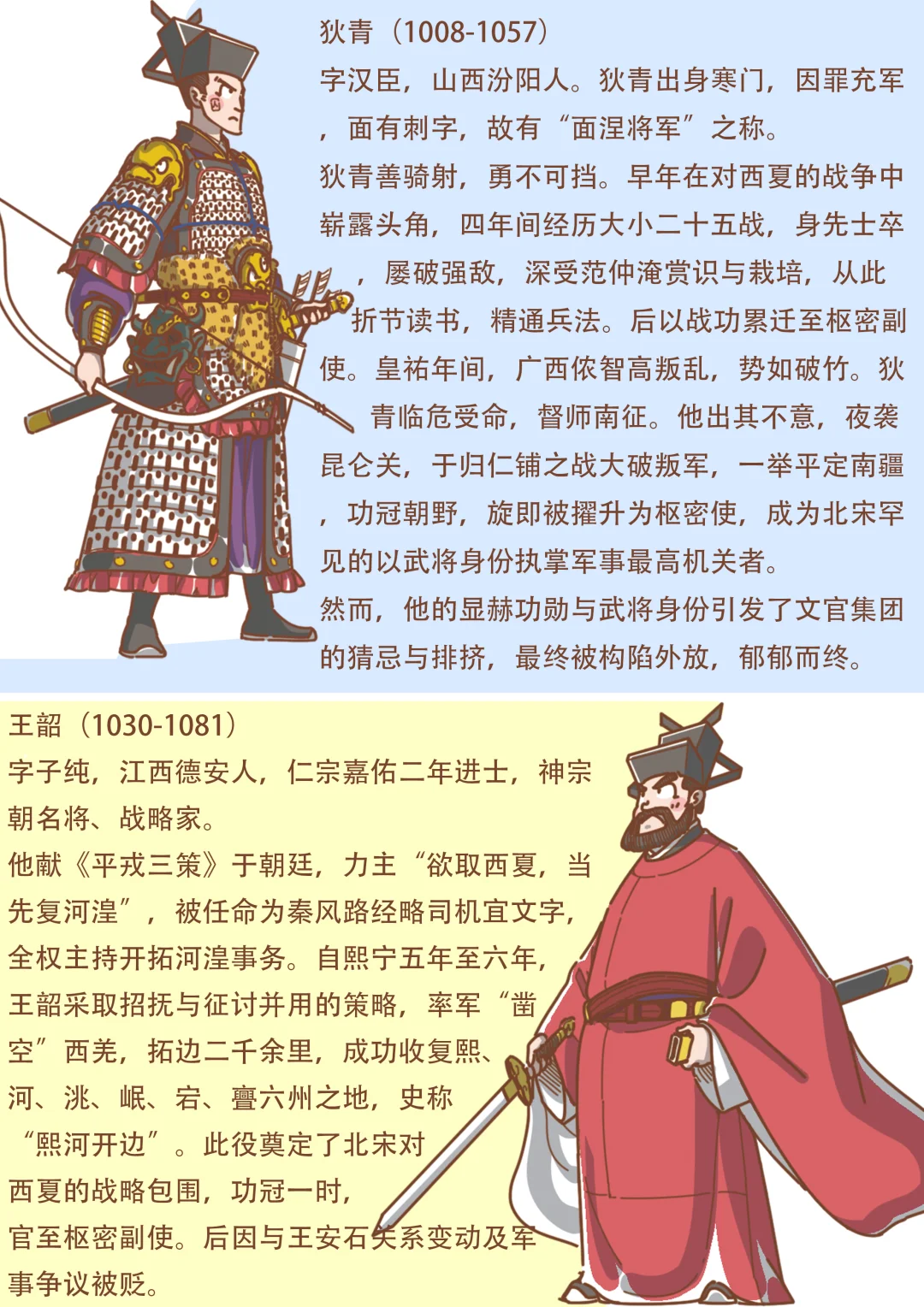 宋朝是中国古代史上重文抑武的巅峰时代,武将不但位卑职小,就连北宋批发式授予的爵位都很难得到。战场上往往由中央临时派遣文官负责通盘指挥,武将只负责冲锋陷阵;这也造就了两宋时代武将在战场上难有建树的时代特点。本篇介绍了12位两宋时期的武将,感觉要凑齐十二个也不是很容易!