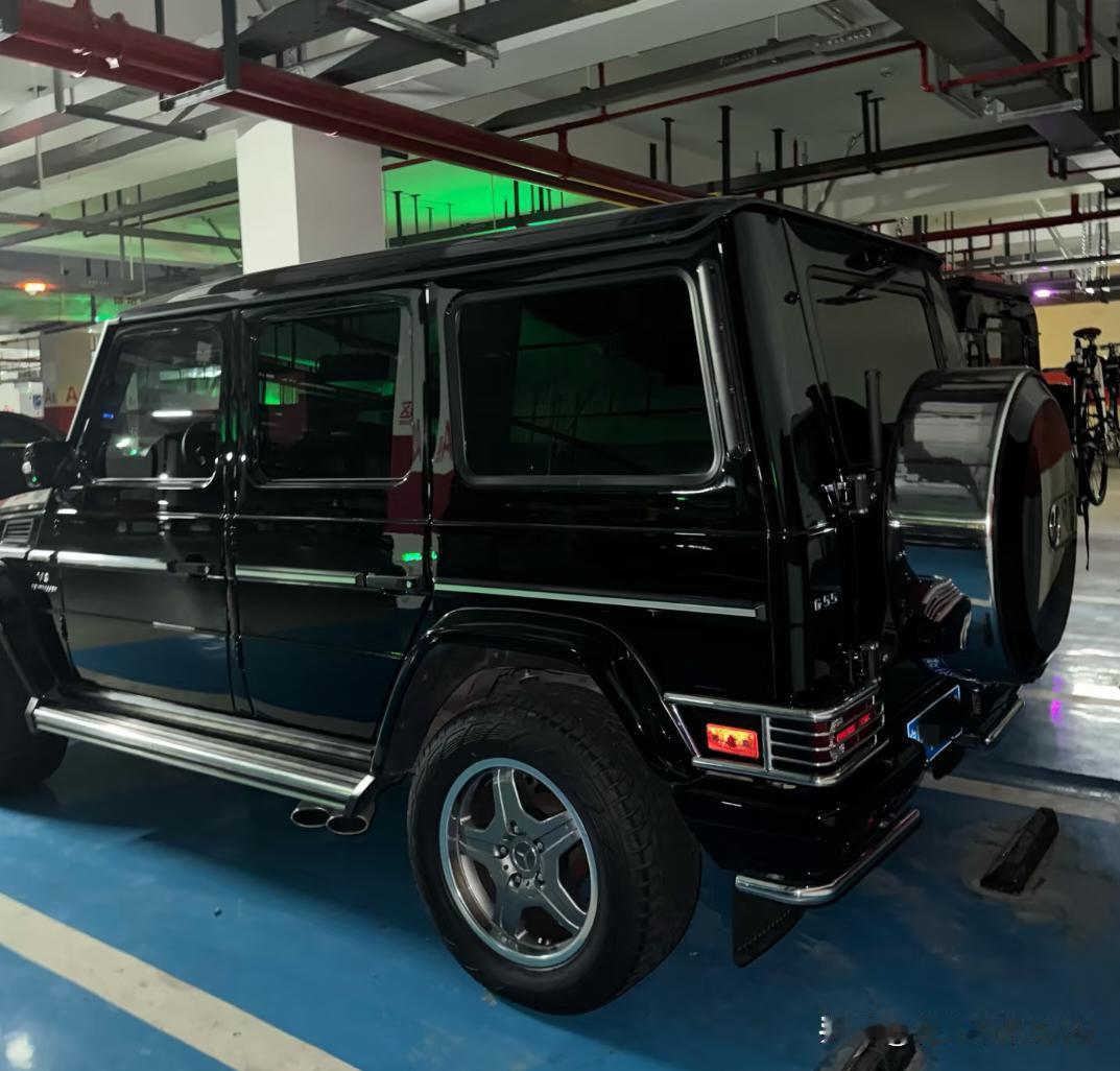 这个是 g55 (应该是前期款,要么是后期09款,改的黄色角灯。 这个车子最强的地方是在于它是纯机械的(机械增压不是涡轮的)。[吐舌] 军车的底子改出来的第1代豪华G ,之前美国西海岸名媛们的最爱啊。身份的象征。
