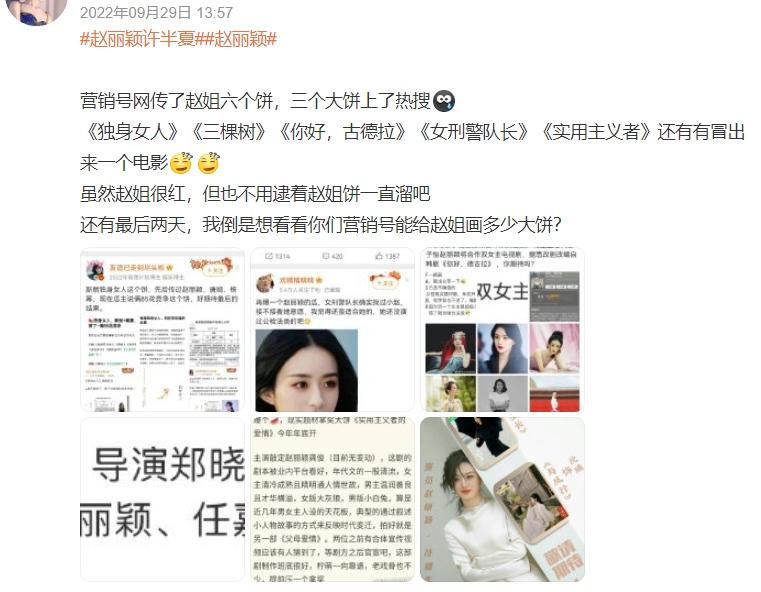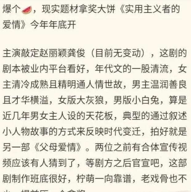 赵丽颖三天被传了三个饼 一个是光线法条电影《最暖的归途》,阵容还有邓超,范丞丞,章若楠,另一个是正午阳光的电视剧《开盘》,搭档白宇帆,还有一个是芒果的《简单的人生》,搭档李沁,感觉可能就是用赵丽颖名字热饼,去年和前年网传赵丽颖的三个大饼《江山大同》,《生命树》,《玉兰花开君再来》,没有一部是赵丽颖演的,赵丽颖反而拍了大家都不知道的《造城者》,不过这次芒果肯定会给李沁一部剧,作为录制《花少》的福利。