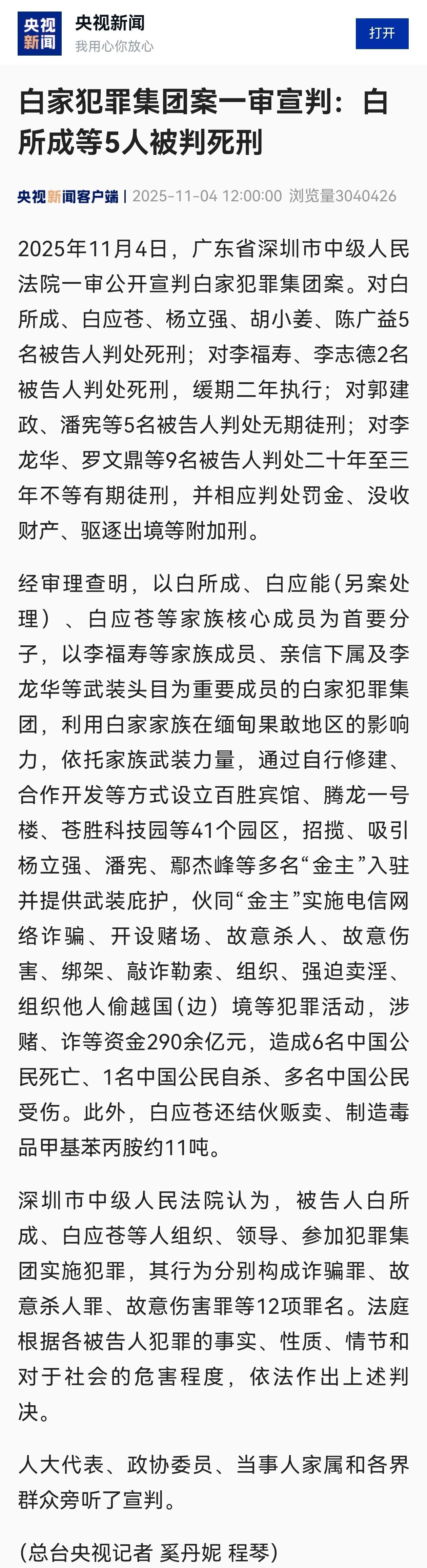 缅甸白家犯罪集团案一审宣判:白所成等5人被判死刑。