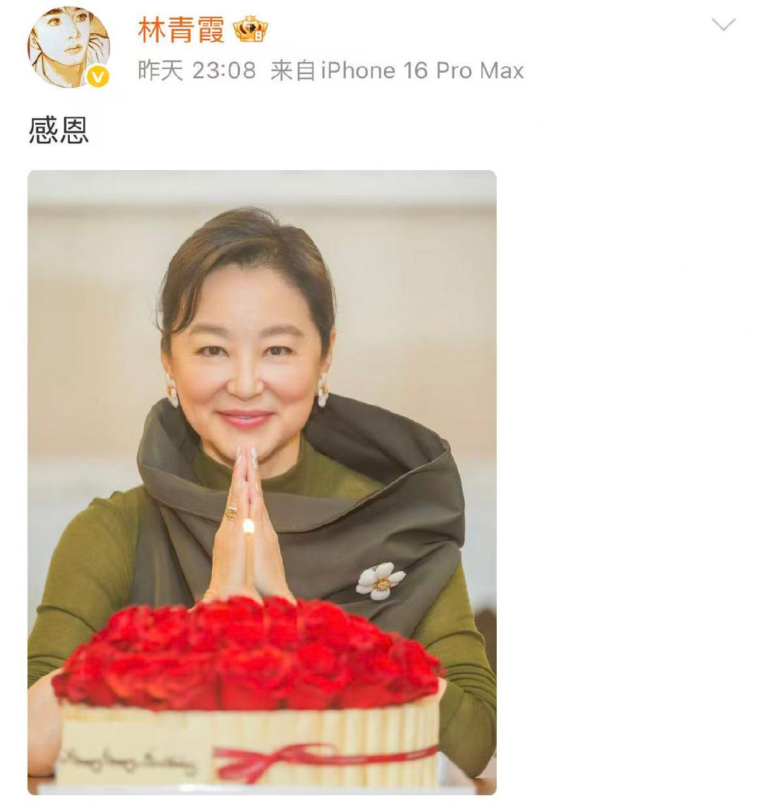 林青霞71岁生日晒照71岁的林青霞 林青霞71岁生日晒照,并配文:“感恩”。