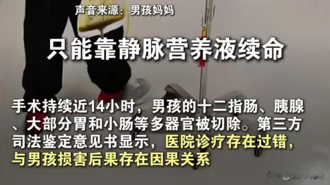 山东菏泽,10岁男孩在学校被撞后腹痛,送到医院后检查出腹内肿瘤,男孩进行了将近14个小时的手术,手术中男孩的十二指肠、胰腺大部分胃和小肠等6个器官被切除,导致他不能吃不能喝,男孩父母质疑医院,申请了司法鉴定,鉴定结果是医院诊疗存在过错,可医院只赔偿20万元。 看着儿子每天痛苦的哭喊,女子心痛无比,无数个日夜吃不下睡不着,恨不得儿子的痛苦转移到自己身上。 她痛恨造成儿子如今痛苦局面的医院,孩子的治疗费用对于普通的家庭就是一笔巨款,而且后续还不知道花费多少,医院竟然只赔偿20万。 想起孩子被撞的那一天,女子就后悔不已,那么相信医院,把孩子的健康交给了他们。 2023年10月份的某天,女子接到学校的电话,说她儿子被撞了,说肚子痛,要求他们赶紧来学校一趟。 女子赶紧赶往学校,看到孩子脸色苍白,一直在喊叫,来不及了解情况,立马送去县医院。 因为儿子腹痛,医生建议腹腔镜探查。女子只想让儿子赶紧得到治疗减轻痛苦,对方说怎么做就怎么做。 很快检查结果出来了,显示孩子腹部内有肿瘤,医生建议手术。 女子又没有医学知识,觉得医生是专业的,应该相信他,于是同意做手术。 而这手术竟然进行了将近14个小时,期间女子不知道是多么的煎熬,手术中4次要求签字。 女子他们当时害怕极了,也质疑县医院的医术,为了给儿子更好的保障,他们要求转院,可都被拒绝。 手术结束,孩子的十二指肠、胰腺大部分胃和小肠等多器官被切除。 女子觉得很不可思议,只是腹内肿瘤,为什么切了6个器官,导致孩子不能吃不能喝,每天只能靠静脉营养液续命。 孩子每天也活在痛苦中,他总会问女子:妈妈我没有了肠子,我怎么办? 作为一个母亲,看到孩子这样,心痛到无法呼吸。 想到孩子的一生被毁了,她质疑是医院的问题,于是申请司法鉴定,第三方司法鉴定意见书显示,医院诊疗存在过错,与男孩损害后果存在因果关系。 女子他们维权了将近2年,而医院在今年7月份才赔偿了20万元,相对于孩子的医药费,这远远不够。 女子又向卫健局求助,得到了书面答复,确认医院存在24小时内未完成病历、手术知情同意书记载不全面、签署不规范、术前会诊不规范等问题,已立案将作行政处理。 这场医疗事故的真相到底如何,女子希望查看监控及手术录像查清真相。 孩子只是腹内肿瘤,结果却被割除6个器官,导致孩子不能吃不能喝,这已经属于医疗事故了。 《民法典》 第一千二百一十八条规定: 患者在诊疗活动中受到损害,医疗机构或者其医务人员有过错的,由医疗机构承担赔偿责任。 女子作为孩子的监护人可以代理提起民事诉讼,基于医疗损害鉴定结论,依据《民法典》向法院提起人身损害赔偿诉讼。可主张的赔偿项目包括:医疗费、护理费、交通费、残疾赔偿金、残疾辅助器具费、精神损害抚慰金以及后续治疗康复费用等。 卫健委核实,该医院存在手术知情同意书记载不全面、签署不规范、术前会诊不规范等问题。 《民法典》第一千二百一十九条规定:医务人员在诊疗活动中应当向患者说明病情和医疗措施。需要实施手术、特殊检查、特殊治疗的,医务人员应当及时向患者具体说明医疗风险、替代医疗方案等情况,并取得其明确同意;不能或者不宜向患者说明的,应当向患者的近亲属说明,并取得其明确同意。医务人员未尽到前款义务,造成患者损害的,医疗机构应当承担赔偿责任。 医院如果告知女子他们手术需要切除6个器官,孩子不能吃不能喝,相信女子不会同意手术,会毫不犹豫的选择转院。 作为孩子的父母,因为医院的过错给孩子造成如此大的伤害,不知道以后的日子要怎么煎熬。 对于此事,您怎么看?