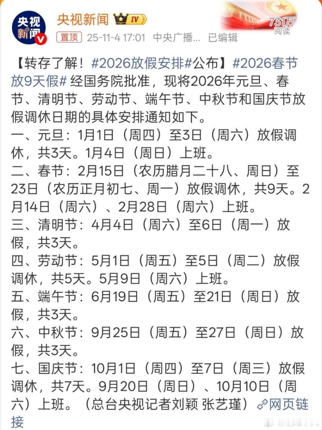 2026春节放9天假好吧,今年过年放9天假,都等不及想过年了。