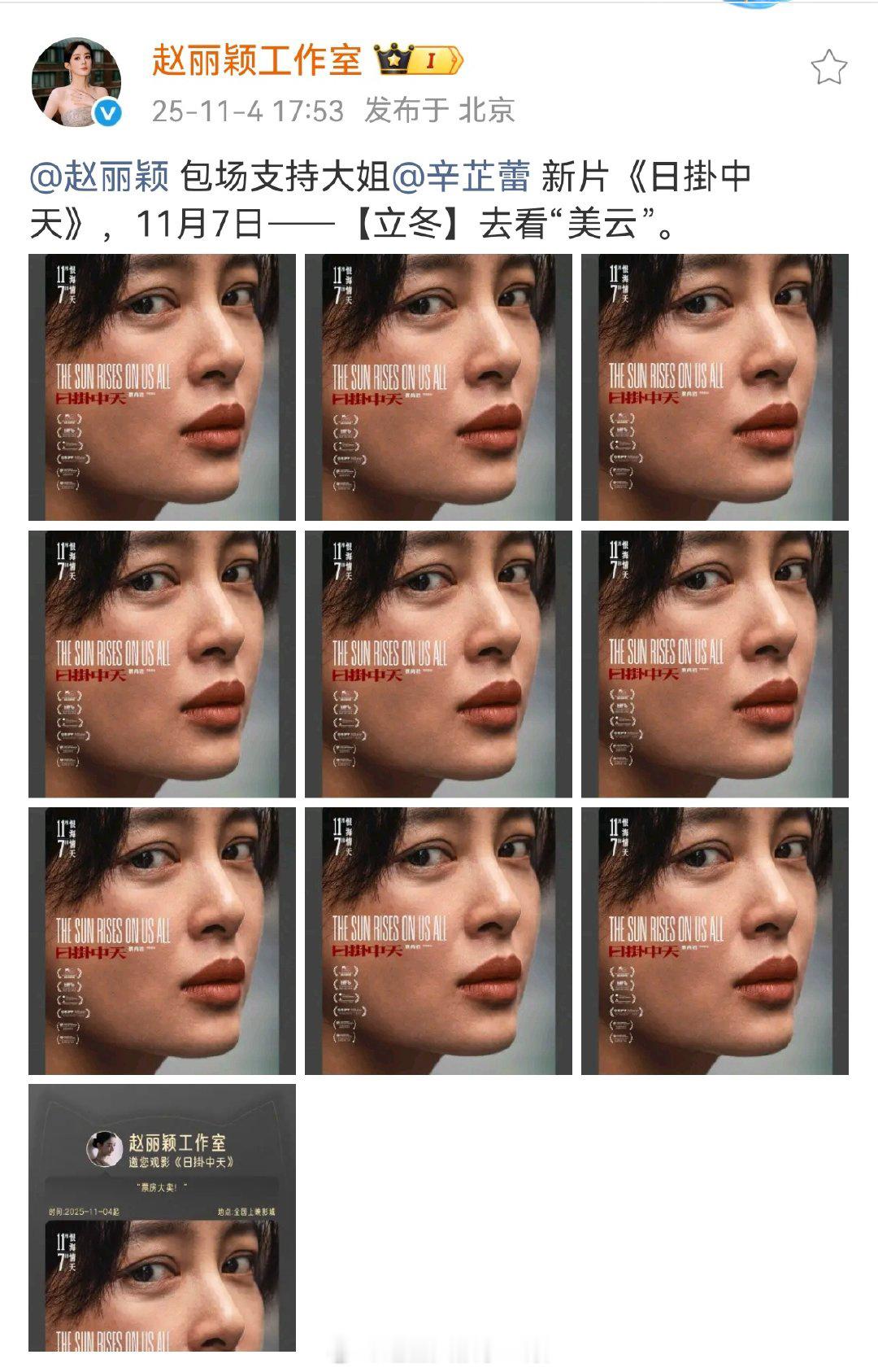 赵丽颖给辛芷蕾的新电影《日掛中天》包场了
