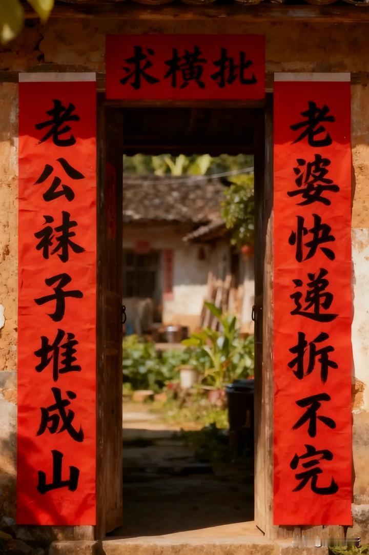 老公发过来一张图片,上联是老公袜子堆成山,下联是老婆快递拆不完!老公说只要我把横批写出来,他就给我200块钱,我想了很久,都写不出来,朋友们,快帮帮我,这个横批到底怎么写啊?