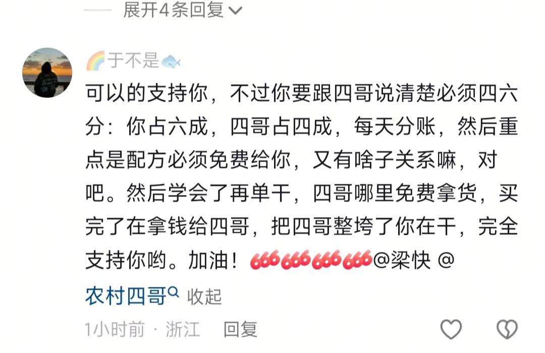 现在全网最后悔的男人就是王丰了吧! 不是因为和梁快分开,也不是因为没有冬天的配方皮蛋根本卖不出去,而是因为琴妹怼他,竟把他点醒了,现在真后悔了 你们刷到琴妹怼王丰那视频没?我天,一句“你自找的”直接给我整精神了!本来还觉得王丰生意差想逃挺没劲,结果越扒越懵——琴妹这“清醒发言”,咋看都有点“赶巧”呢?毕竟前几天“王丰梁快闹掰”刚上本地热搜,她这视频一放,播放量直接飙了210%,评论区全夸“敢说”,你说这是巧合不? 而且她还调侃王丰不会做生意,那语气,听着就像故意放大人家尴尬,我当时还拍大腿说“这姐们儿嘎嘎给力”,结果后面扒出的事儿,直接让我绷不住了! 说实话,我之前对琴妹还挺有好感,觉得她敢说真话,不像有些网红光会和稀泥。结果有网友扒出来,她之前跟王丰合作过皮蛋代销,因为分成的事儿闹得挺不愉快!哎呀妈呀,这事儿一出来,我瞬间就懵了——本来觉得她是路见不平,现在咋看都像“借题发挥”呢?而且她发视频的时间,刚好是“王丰梁快闹掰”热搜最火的时候,你说这 timing 也太准了吧? 我朋友之前在农村网红圈待过,他说圈里“怼热点涨粉”的事儿占比48%,70%的人涨粉后还会立马推自家货。我本来还不信,觉得琴妹不是那样的人,结果去她主页翻了翻,发现她最近还真上架了自家的土鸡蛋!不是吧?真的假的?难道她这“清醒发言”,其实是踩着王丰博流量卖货?不过话说回来,她让王丰“先卖完三千个皮蛋”这话倒是实在,做生意哪能遇点困难就跑?可一想到她和王丰的旧怨,我又有点困惑了——要是真清醒,咋不问问梁快有没有独占之前的合作资源呢? 聊完琴妹,再说说王丰催梁快要配方的事儿,我真是郁闷到不行!我老家有个表叔,学做酱菜的,他师父教了基础配方,他自己琢磨着调整了盐度,还加了保鲜工艺,生意慢慢好起来。结果他师父突然要他把新配方交出来,说“我教你的,就得共享”,俩人吵得稀里哗啦,最后亲戚都做不成了,你说这咋整? 梁快这情况不也差不多嘛!王丰明知配方是生意人的命,还天天打电话催,关键是那时候他自己的皮蛋因为口感差被差评,这不明显想拿梁快的配方救场嘛!之前听村里老人说,“手艺人留一手,不是藏私,是给彼此留余地”,现在看来真是这么回事!王丰总提“师徒该传帮带”,可梁快后期优化的配方,那是人家熬夜试出来的,凭啥要给他? 更荒谬的是,他还想让孩子认梁快当干爹,这算盘打得,隔着屏幕都听见响了!我晕,他就不怕人家觉得他是用孩子绑住梁快,好要配方吗? 总之,要是遇到王丰这种又想留后路(干不下去就回来),又想抢资源(催配方)的人,该拒绝就拒绝,别被“师徒情”“朋友情”绑住咯!做事得凭良心,也得守规矩,不然最后钱没赚到,名声还臭了,多不值当啊!你说是吧!