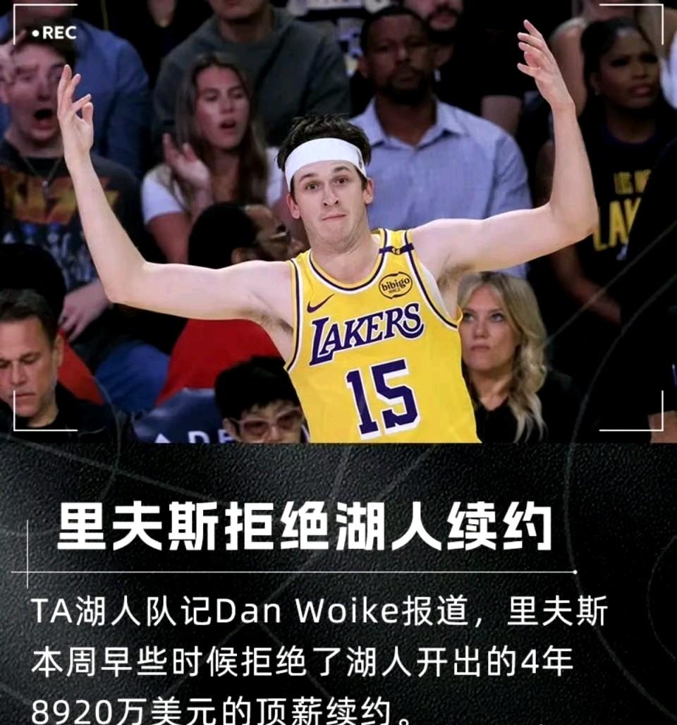 现在知道里夫斯为啥拒绝4年8900万的续约了吧?如果明年夏天跳出合同成为自由球员,可以和湖人签下5年2.467亿超级顶薪合同,和其他球队签下4年1.829亿顶薪合同。但是小托马斯的教训摆在这里: “曾经有份4年8920万美元的续约合同放在我面前,但我没有好好珍惜!等到失去后,我才后悔莫及,人世间的痛苦莫过于此。如果湖人能给我一次再做决定的机会,我会对那份合同说:我同意。如果非要在这份合同上加个期限,我希望是:马上签”。