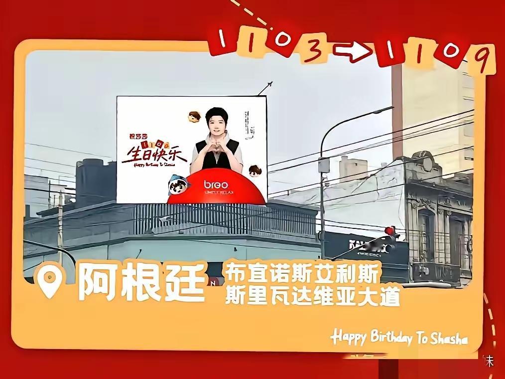 莎莎的生日排面太炸了! 阿根廷布宜诺斯艾利斯都挂起了生日大屏,11月3号到9号, 全世界都在为她庆生~ 粉丝遍布各国各地,这 份喜爱根本藏不住。 去年就有黑子酸“不是六十大寿”“对父母没这么好”, 今年全球应援刷屏, 怕是要把黑子气到跳脚。 喜欢一个人愿意为她花心思, 从来都不是错, 这是粉丝和偶像之间的双向奔赴。 难道非要按别人的标准表达热爱才叫合理? 你觉得全球粉丝给莎莎庆生超酷,还是觉得没必要?