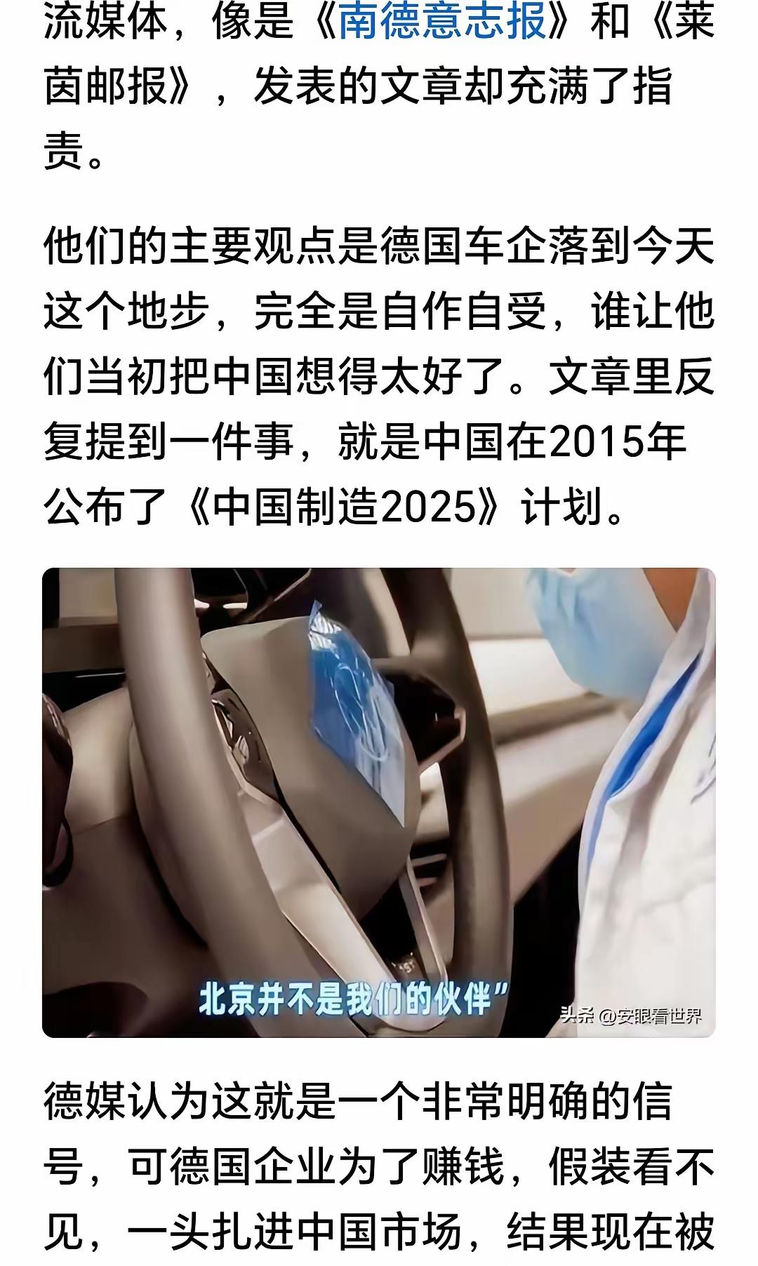 德国外长为啥大放厥词? 看完这差距就懂了! 10年前德国喊出工业4.0, 咱们紧跟推出中国制造2025, 如今结果堪称“反向逆袭”。 中国制造2025上半年平均完成率86%,不少领域冲到95%, 而德国工业4.0硬生生变成了“工业404”,被按在地上摩擦毫不夸张。 最打脸的是汽车业, 德国本土人居然走私咱们生产的大众电车往回卖, 以迪子为代表的新能源车更是横扫欧洲。 眼看拼不过,欧盟急得想抢电池技术,荷兰之前抢安世也都是这心思。 说白了,德国是输急了眼才放不友好言论,他们信奉零和博弈, 压根容不下别人发展。 咱们讲共赢,但不代表要惯着这种蛮不讲理的操作,实力差距摆在这, 不是靠嘴炮就能逆转的。 你觉得欧洲接下来还会搞出哪些小动作?