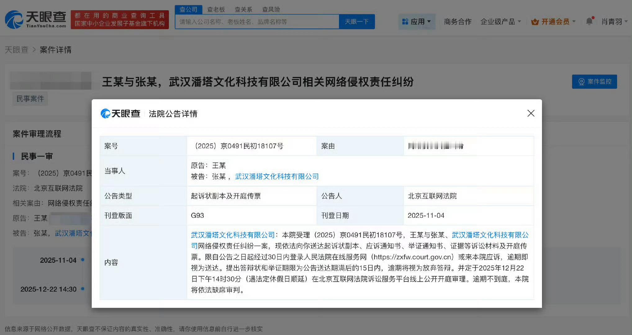 王一博新增网络维权案件