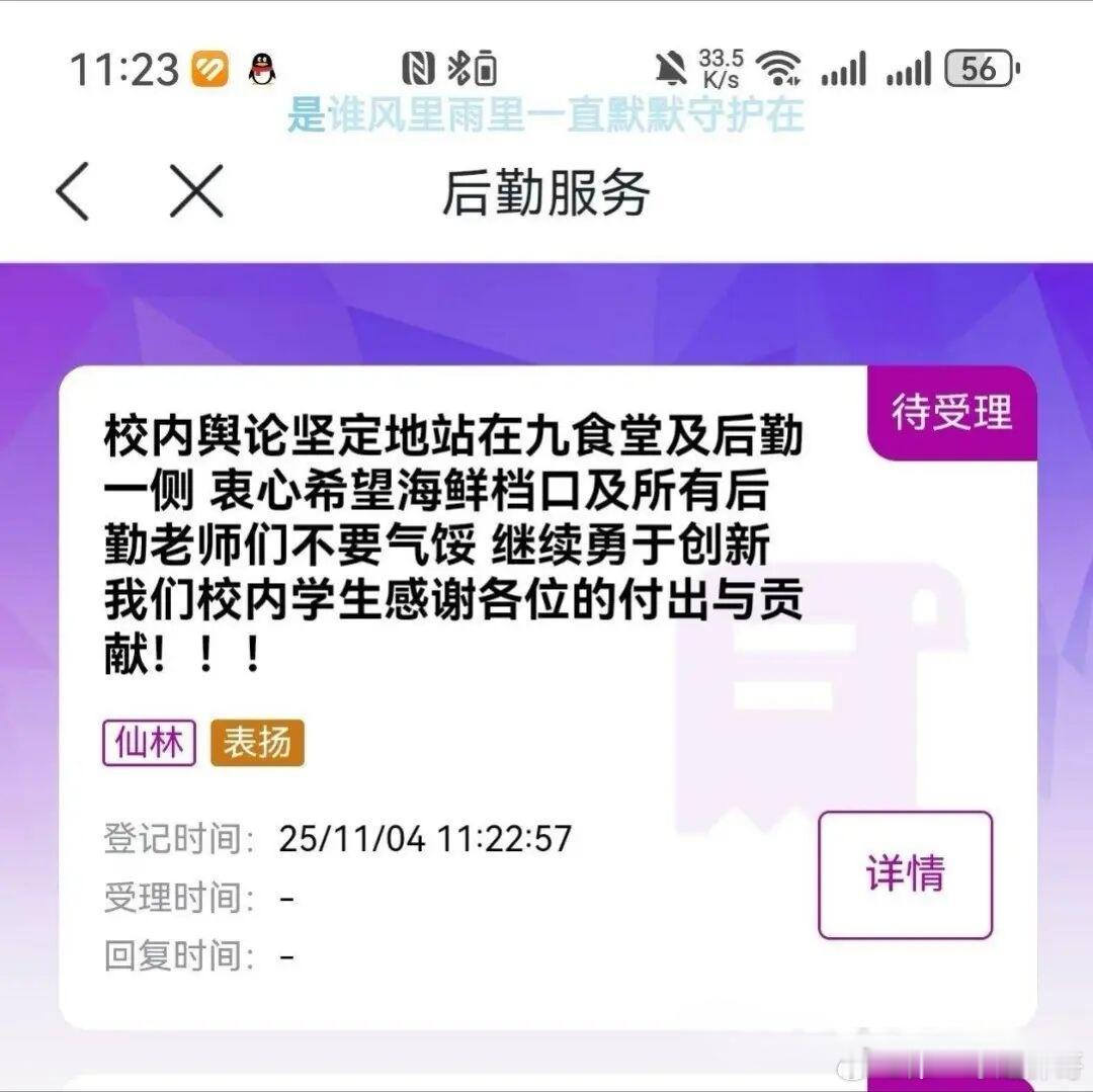 在校学生同时表达了对学校后勤处、九食堂的支持,称校外商家主理的九食堂好不容易盘活,能在校内自营食堂之外,额外为师生提供更多餐食选择,这于地处郊外常年野猪猪出没的仙林校区没啥不好。