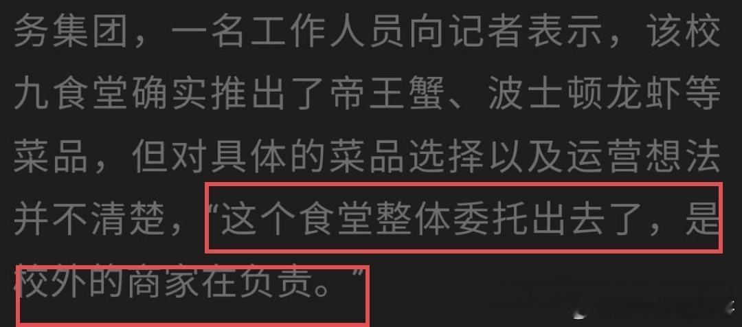 于公家,校外商家自营档口自负盈亏,不涉及吃国家补贴;于师生,他们自己都没被帝王蟹刺痛到啥阶级地位、贫富差距,想吃的几人能拼团,只要不浪费没啥毛病。另外,心潮报等一众媒体也是懂柿子要挑软的捏。