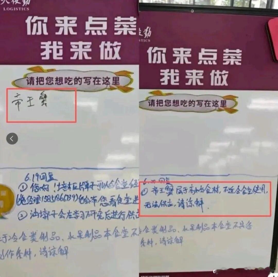 南京大学也清楚校方强调自营食堂售卖高级食材并不合适,所以此前“你来点菜我来做”互动中,后勤处回应学生想吃帝王蟹时明确表态了。